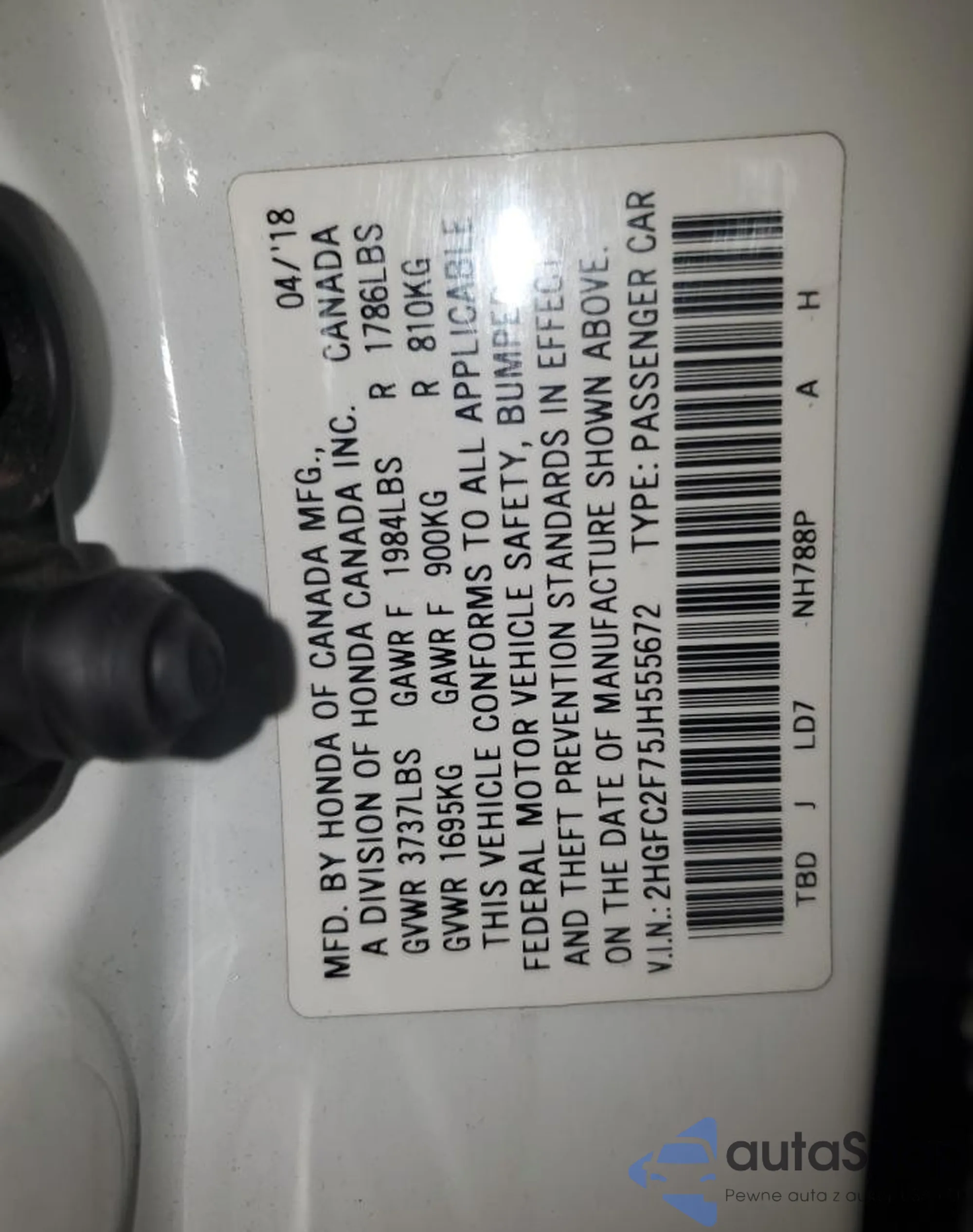 • VIN 2HGFC2F75JH555672