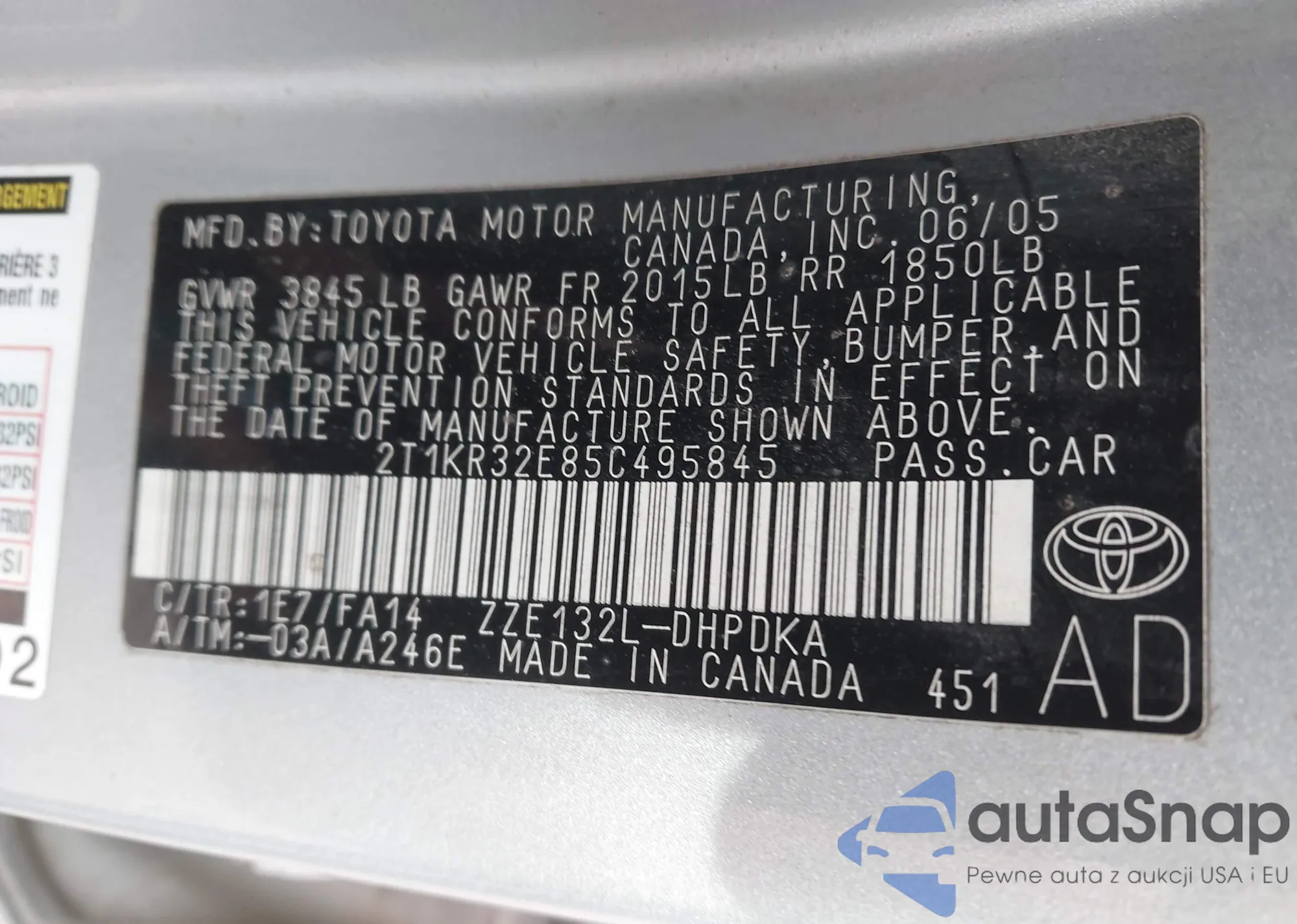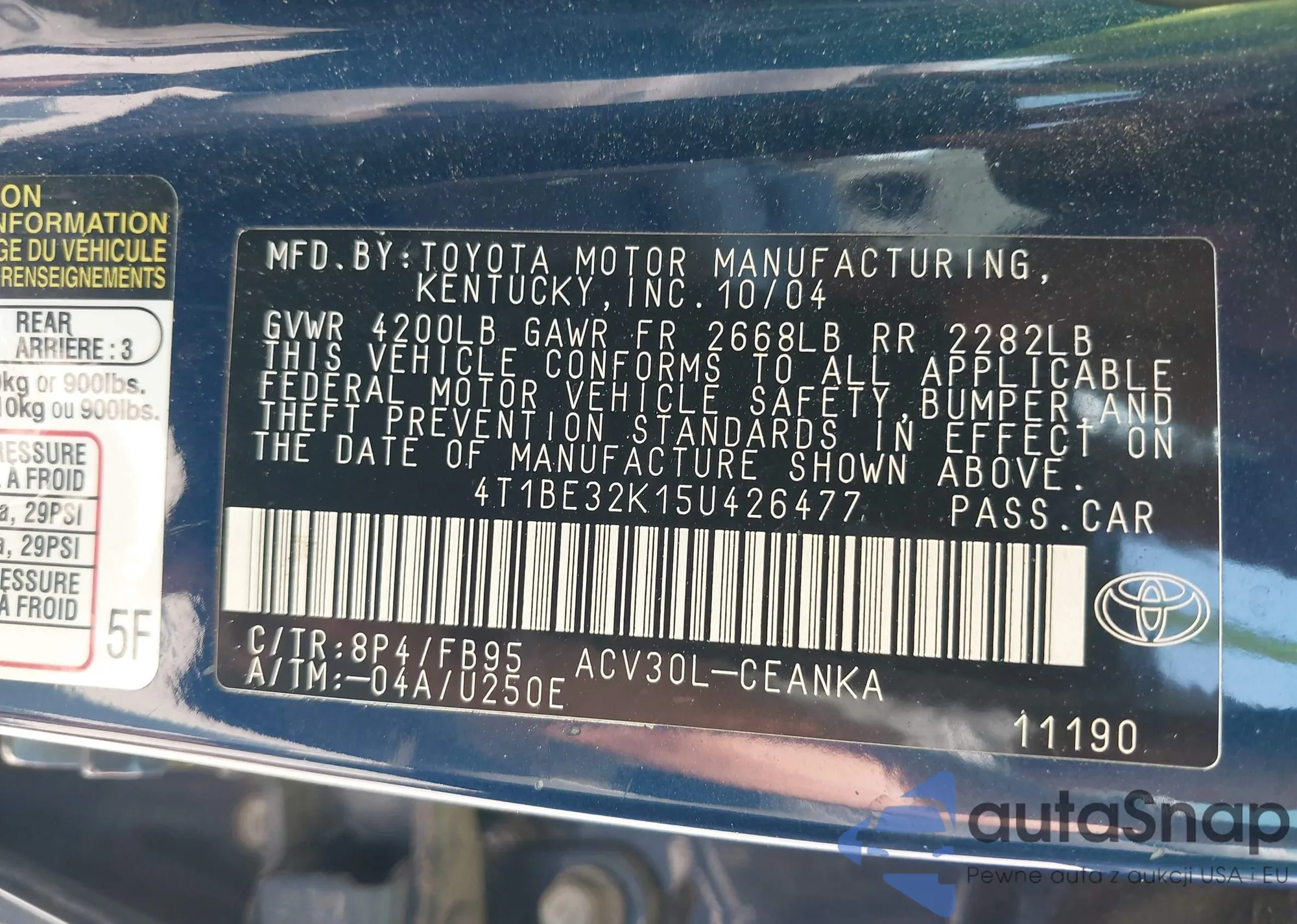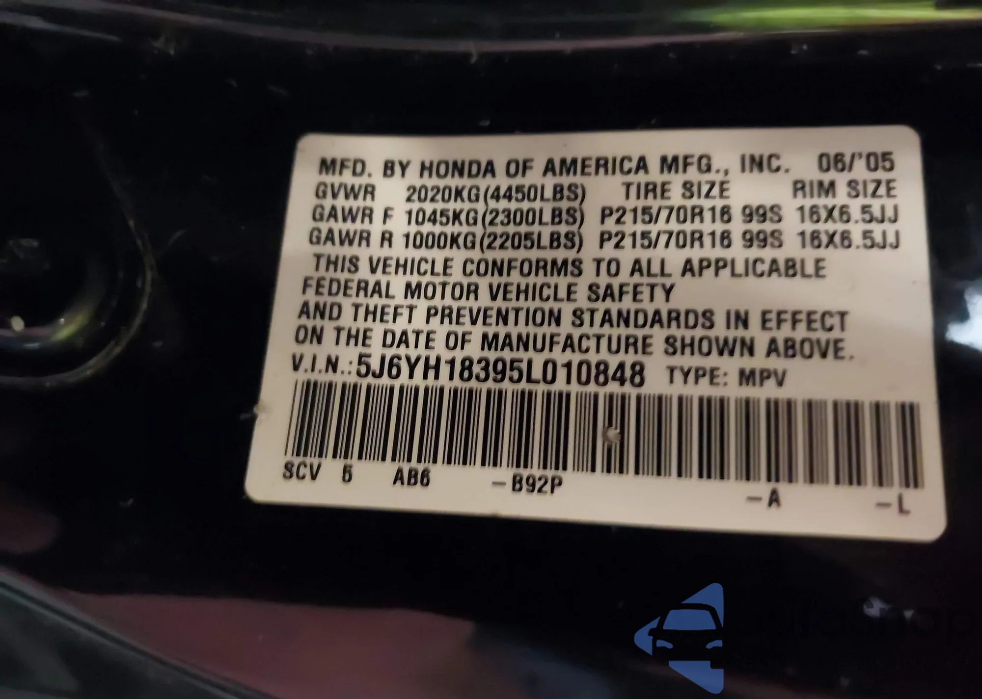 • VIN 5J6YH18395L010848