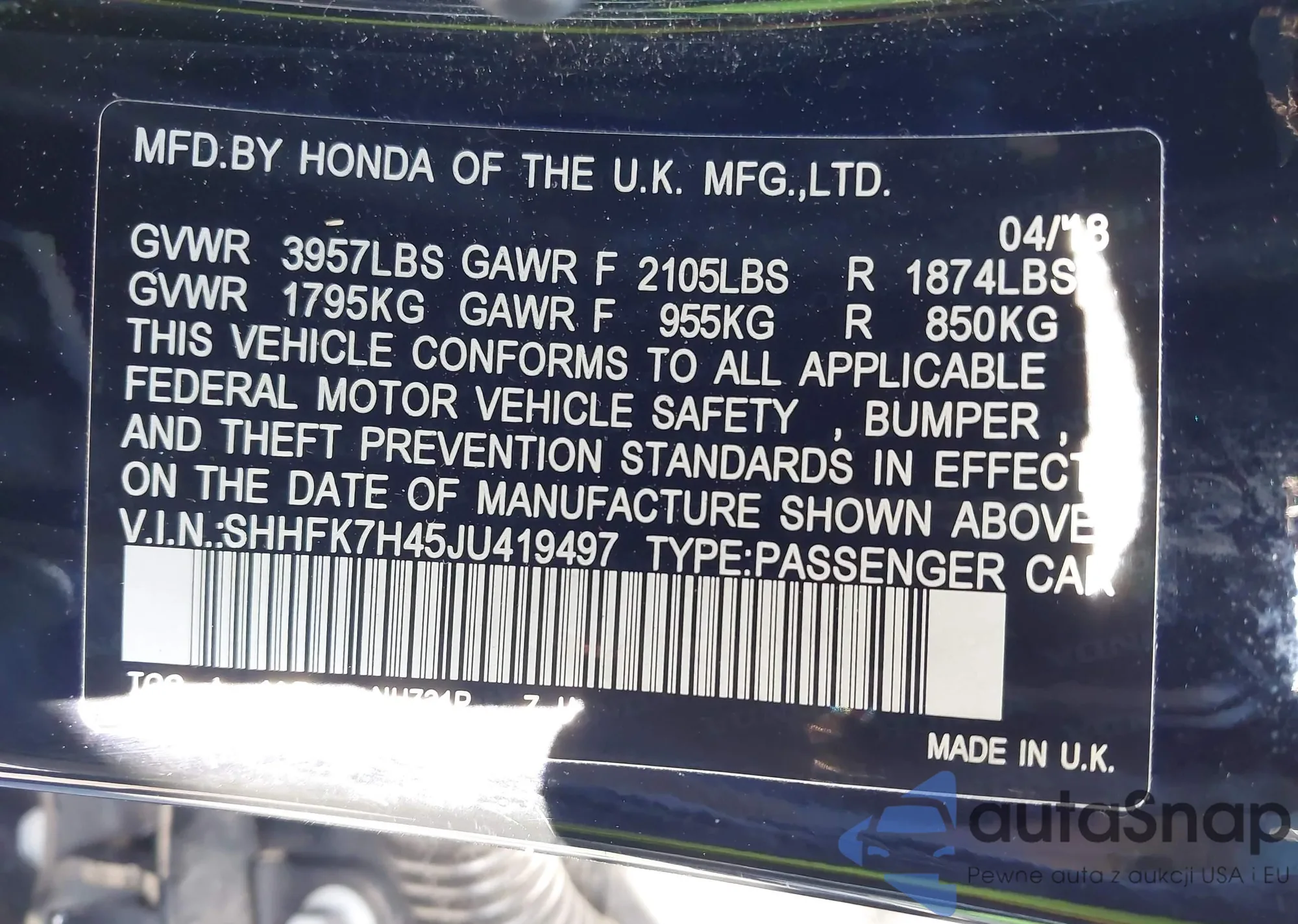 • VIN SHHFK7H45JU419497