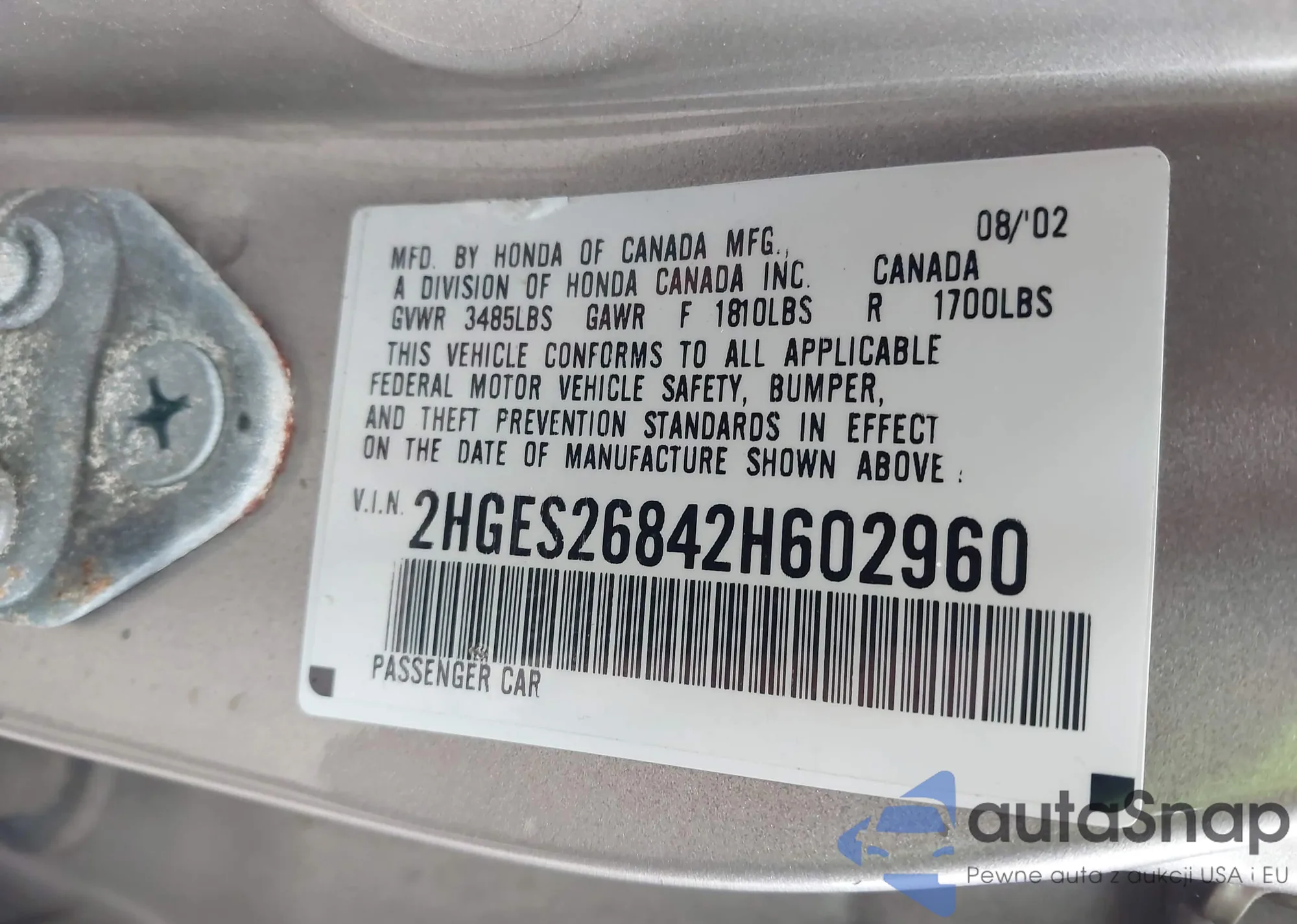 • VIN 2HGES26842H602960