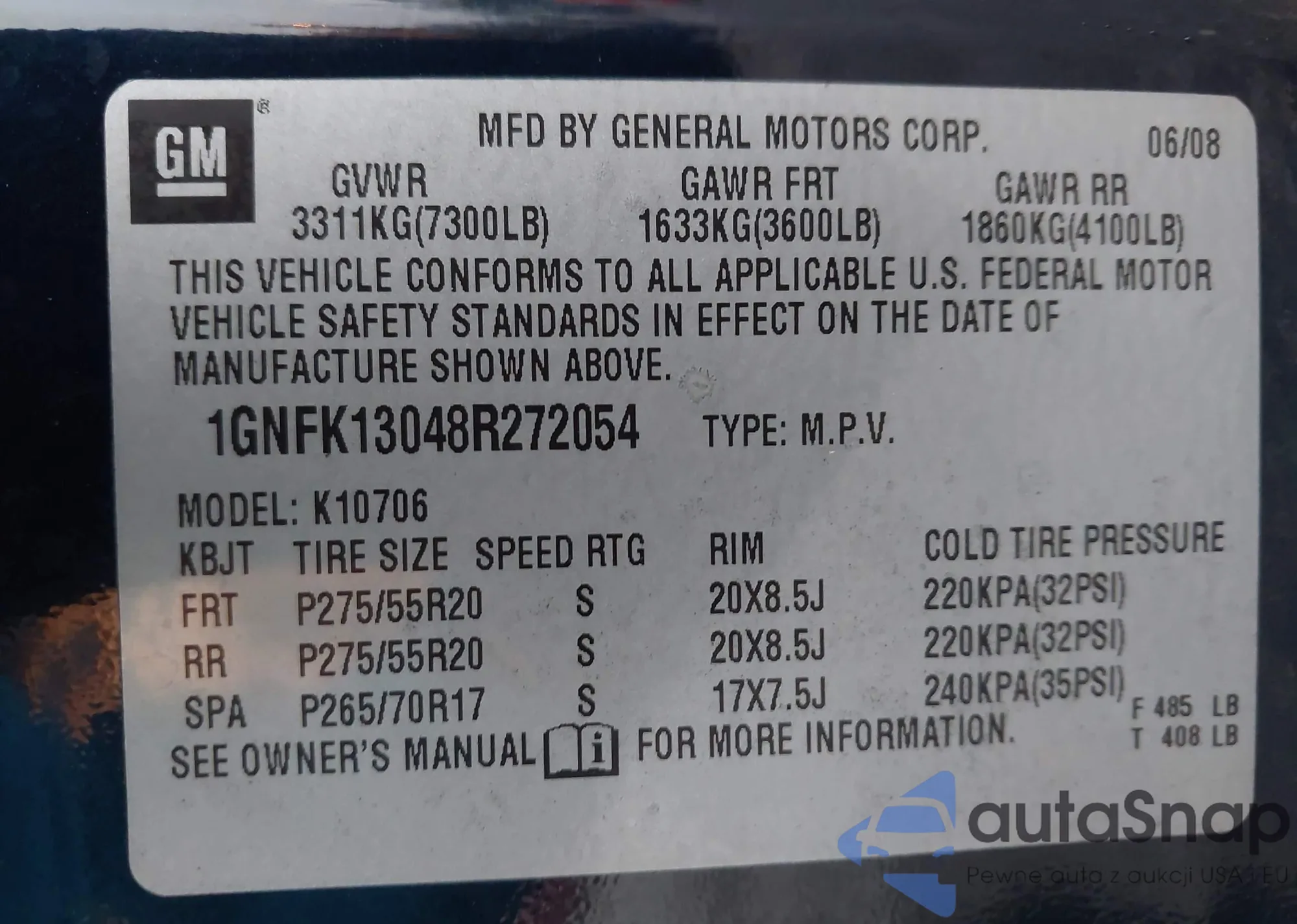 LOT: 43574871 VIN: 1GNFK13048R272054