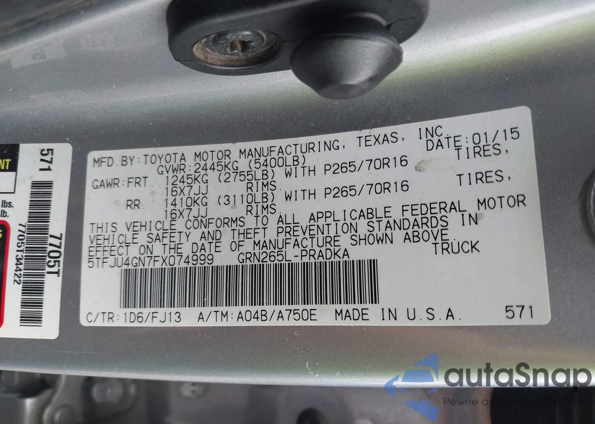 • VIN 5TFJU4GN7FX074999