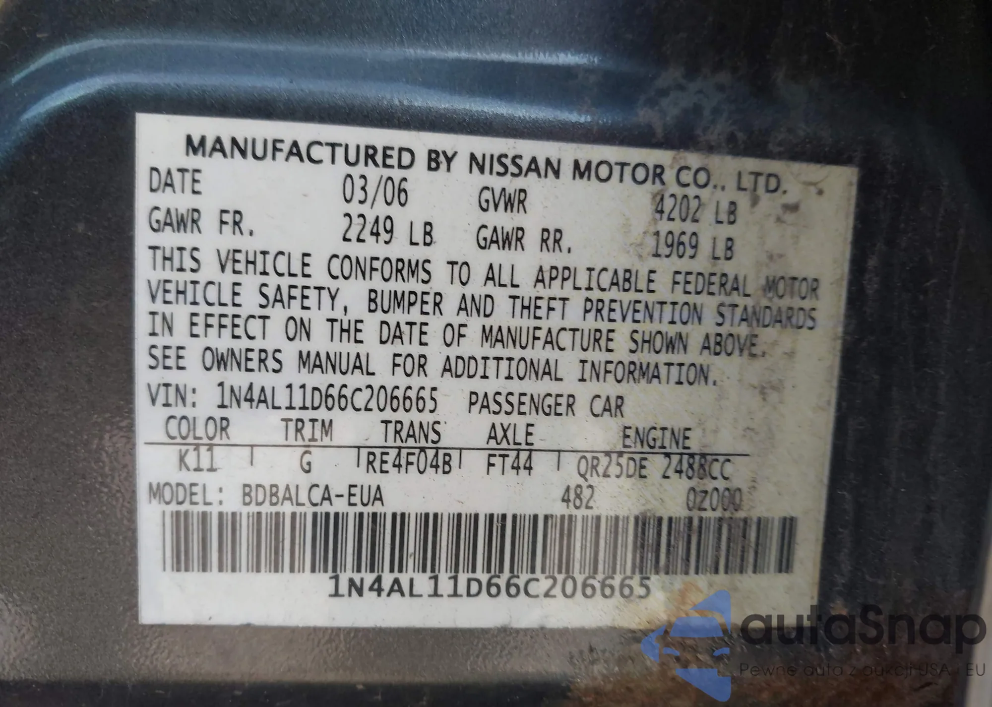LOT: 43297546 VIN: 1NXBR32E06Z717651