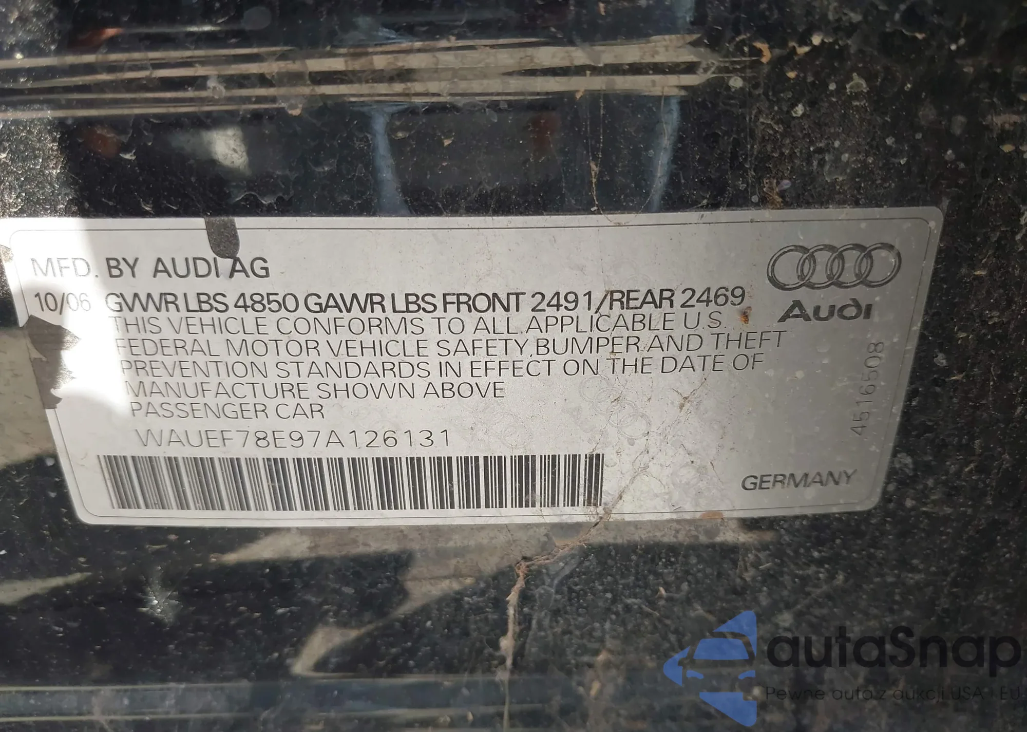 LOT: 43326374 VIN: WAUEF78E97A126131