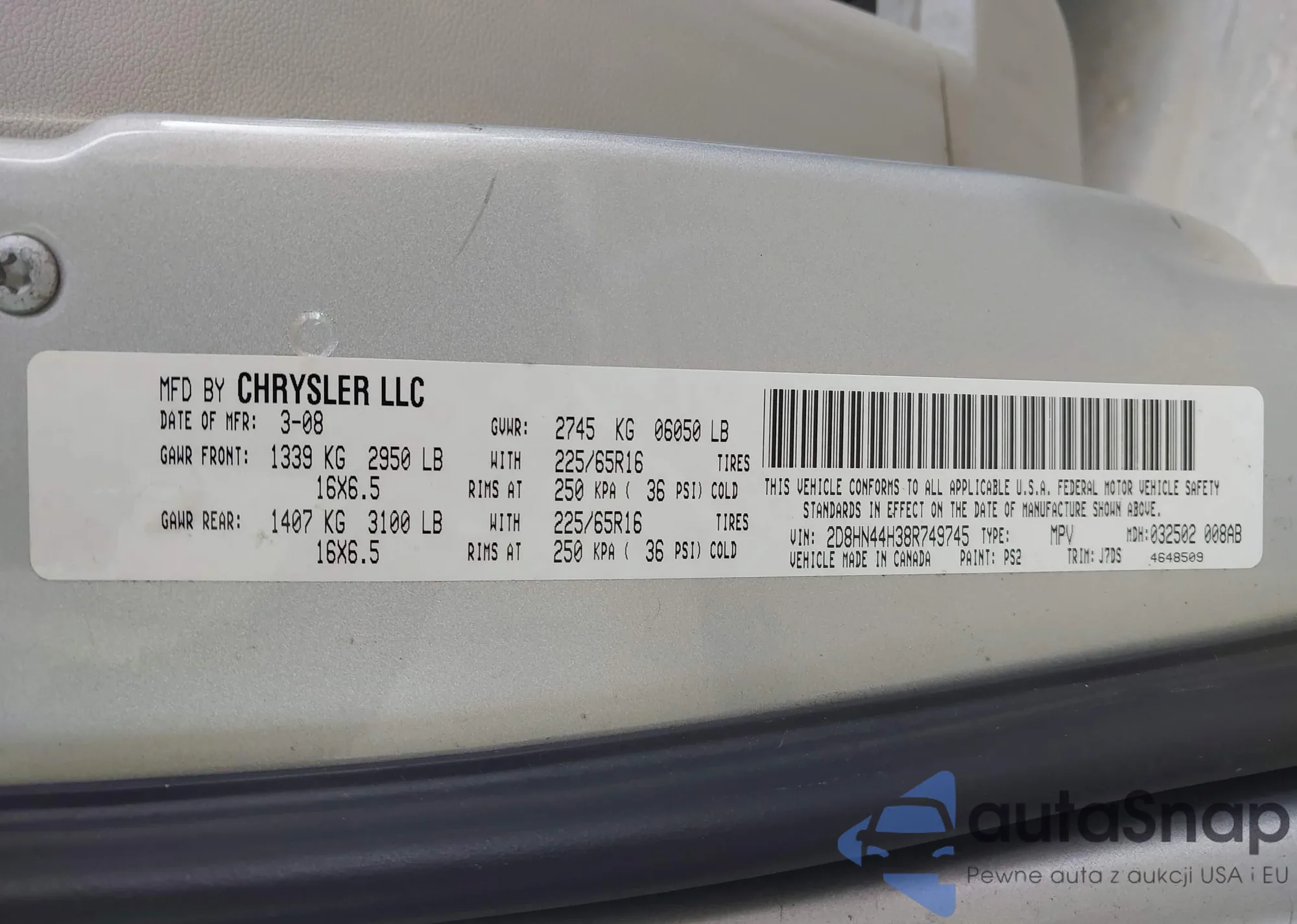 • VIN 2D8HN44H38R749745