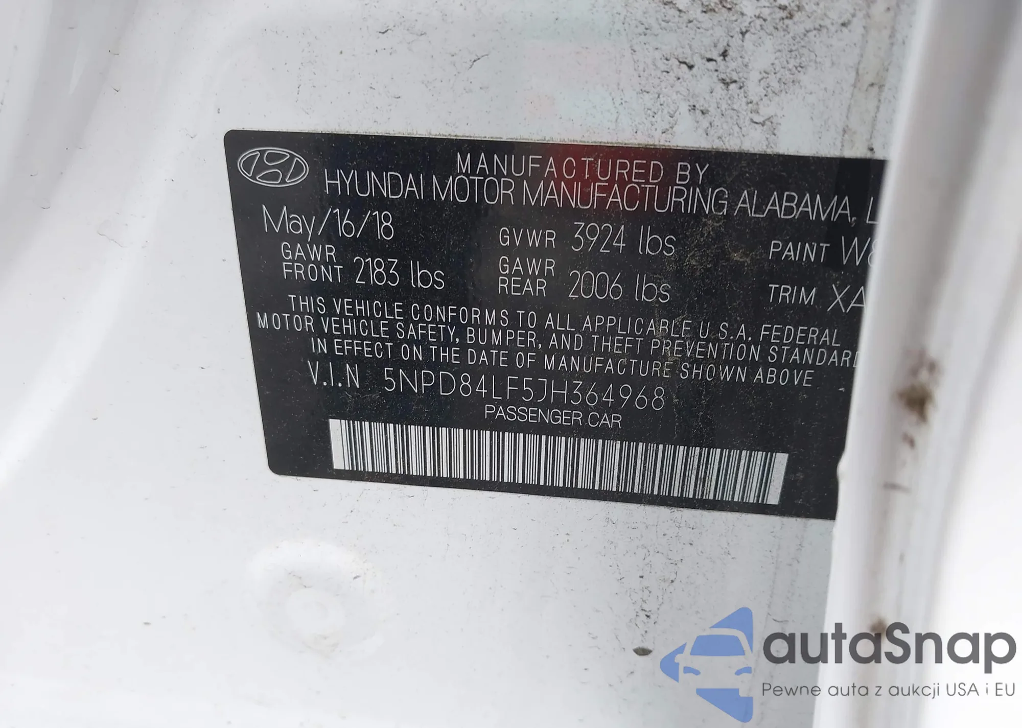 • VIN 5XYZU3LB9HG410425