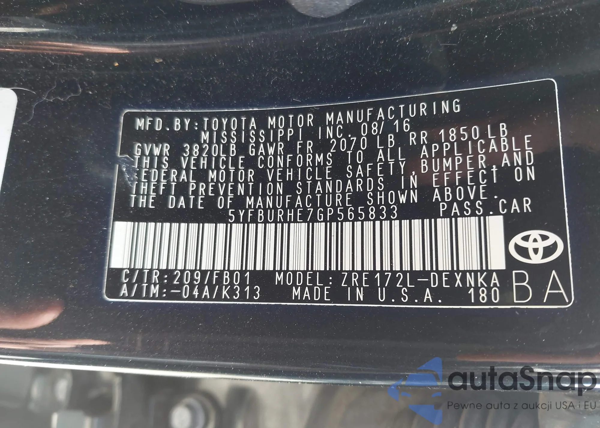 • VIN 5YFBURHE7GP565833