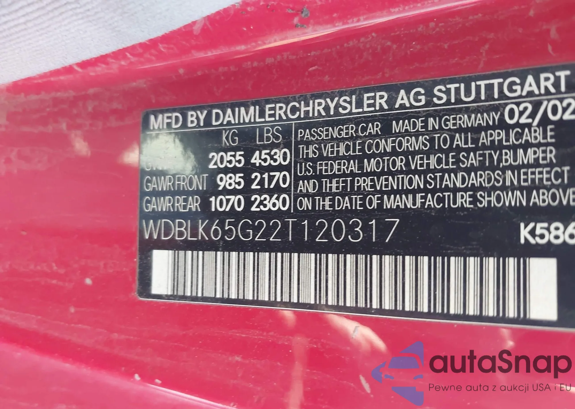 LOT: 43365091 VIN: WDBLK65G22T120317