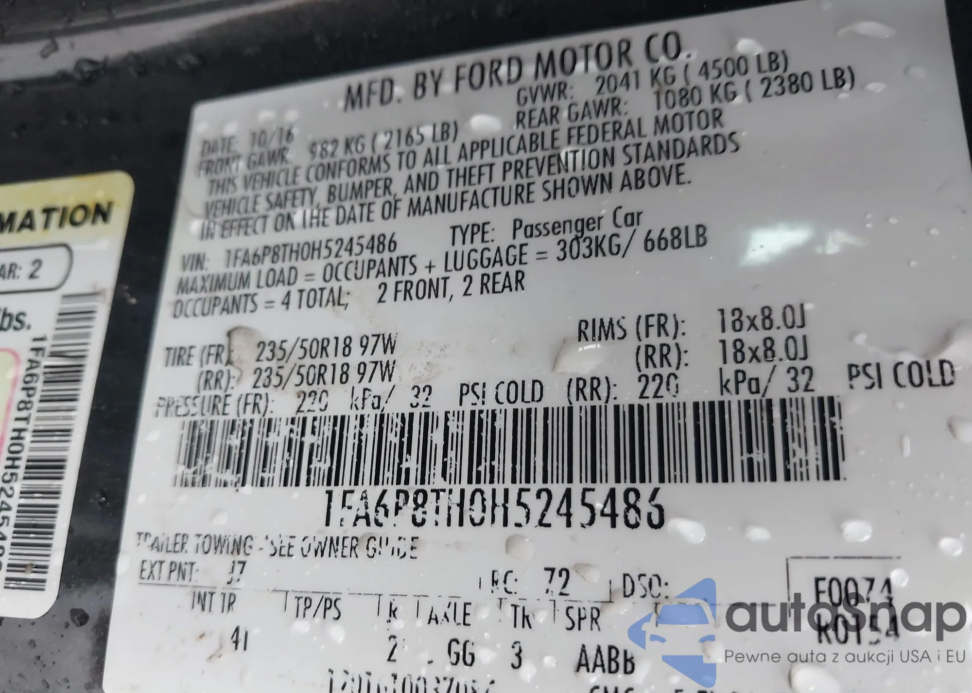 • VIN 5J8TB2H55AA004397