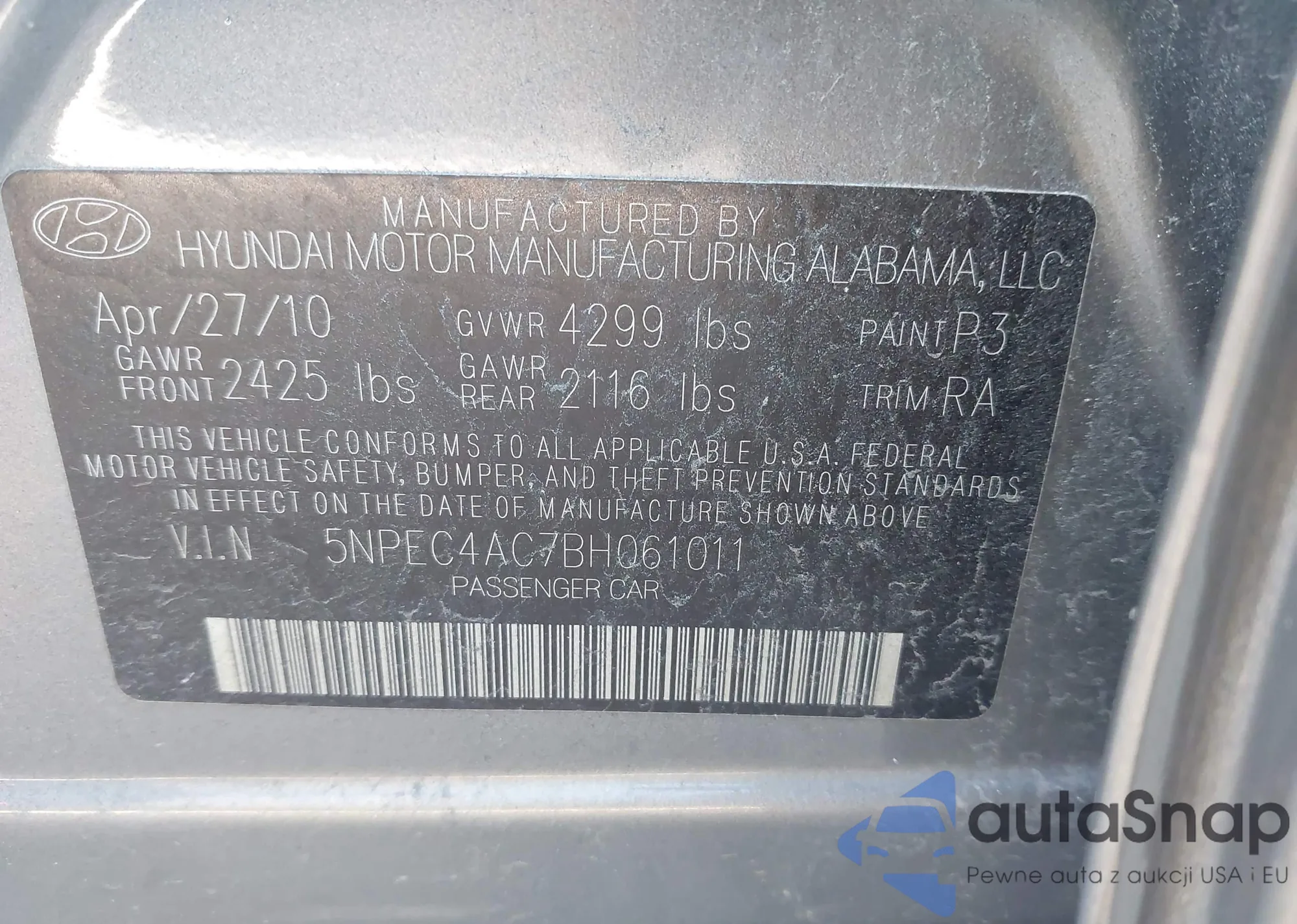 • VIN 5NPEC4AC7BH061011