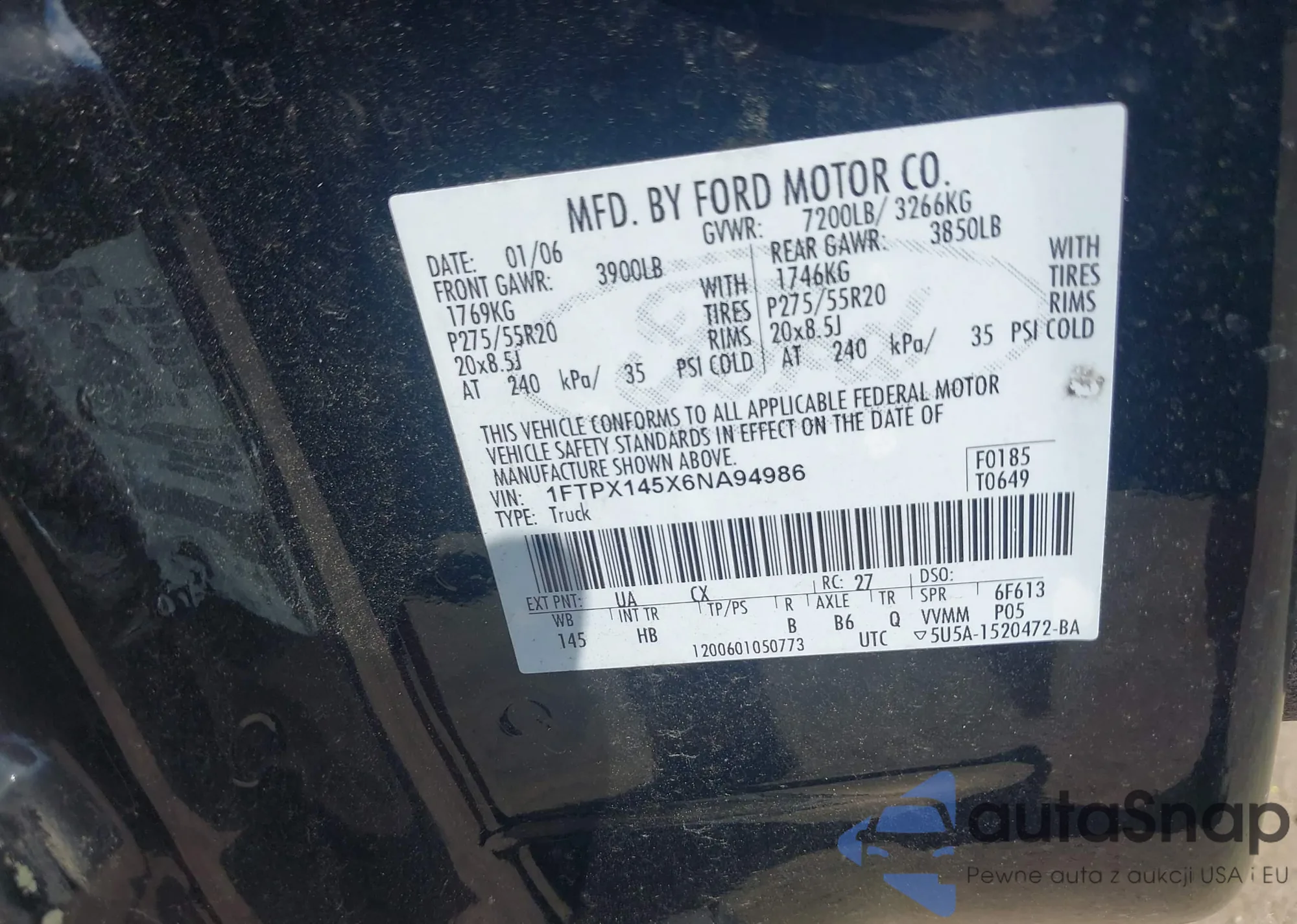 • VIN 1FTPX145X6NA94986