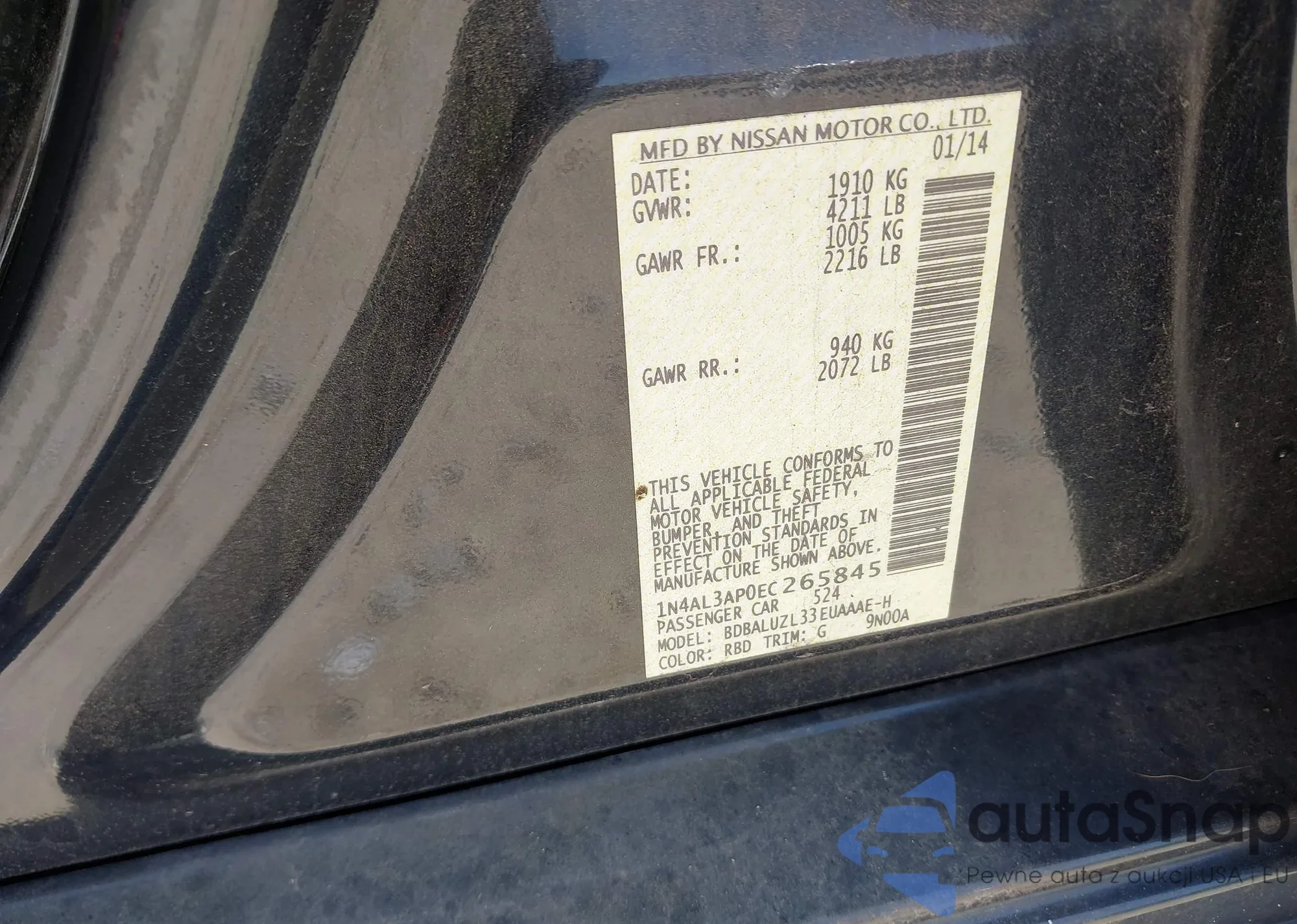 LOT: 43229150 VIN: 1N4AL3AP0EC265845