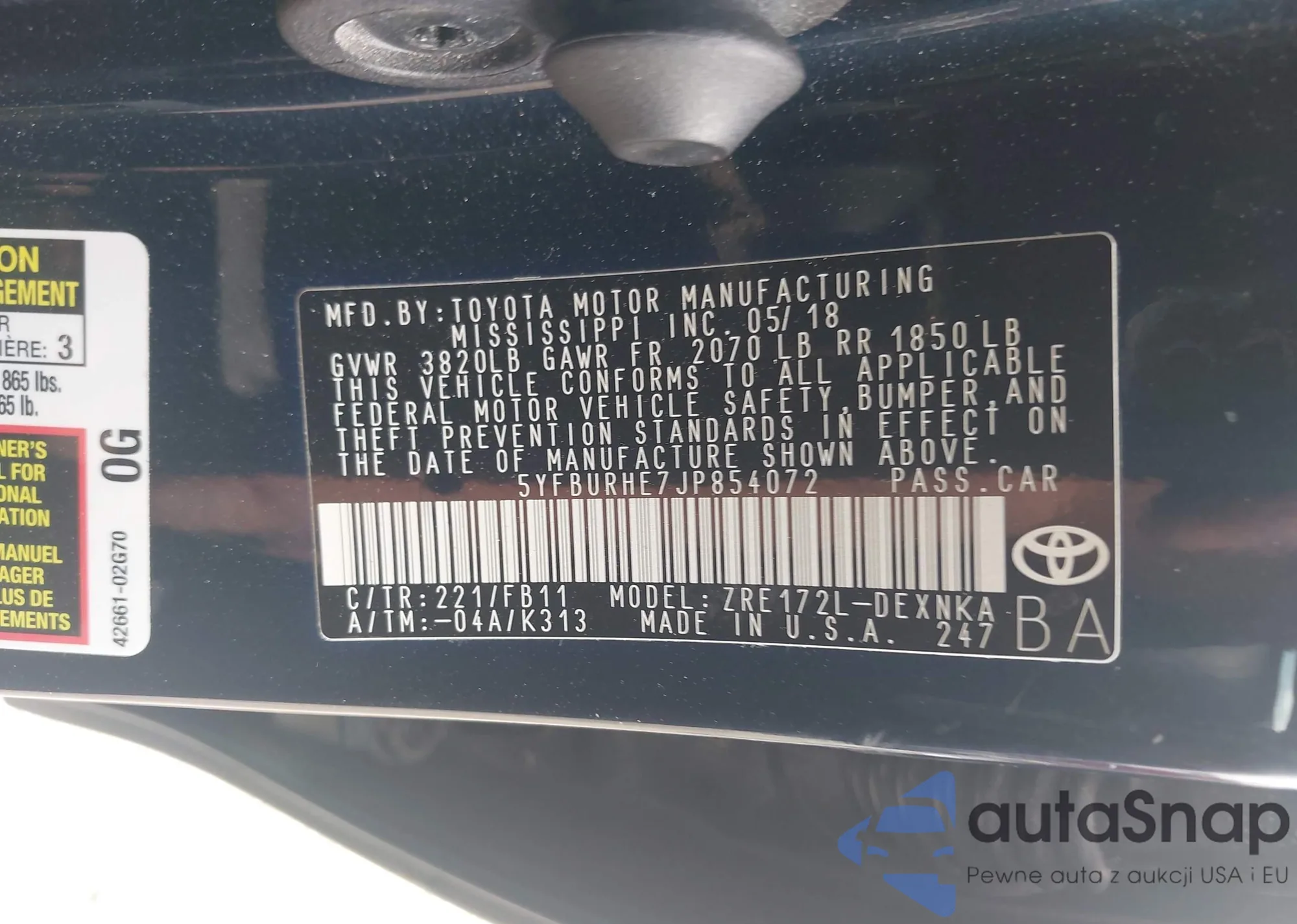 • VIN 5YFBURHE7JP854072