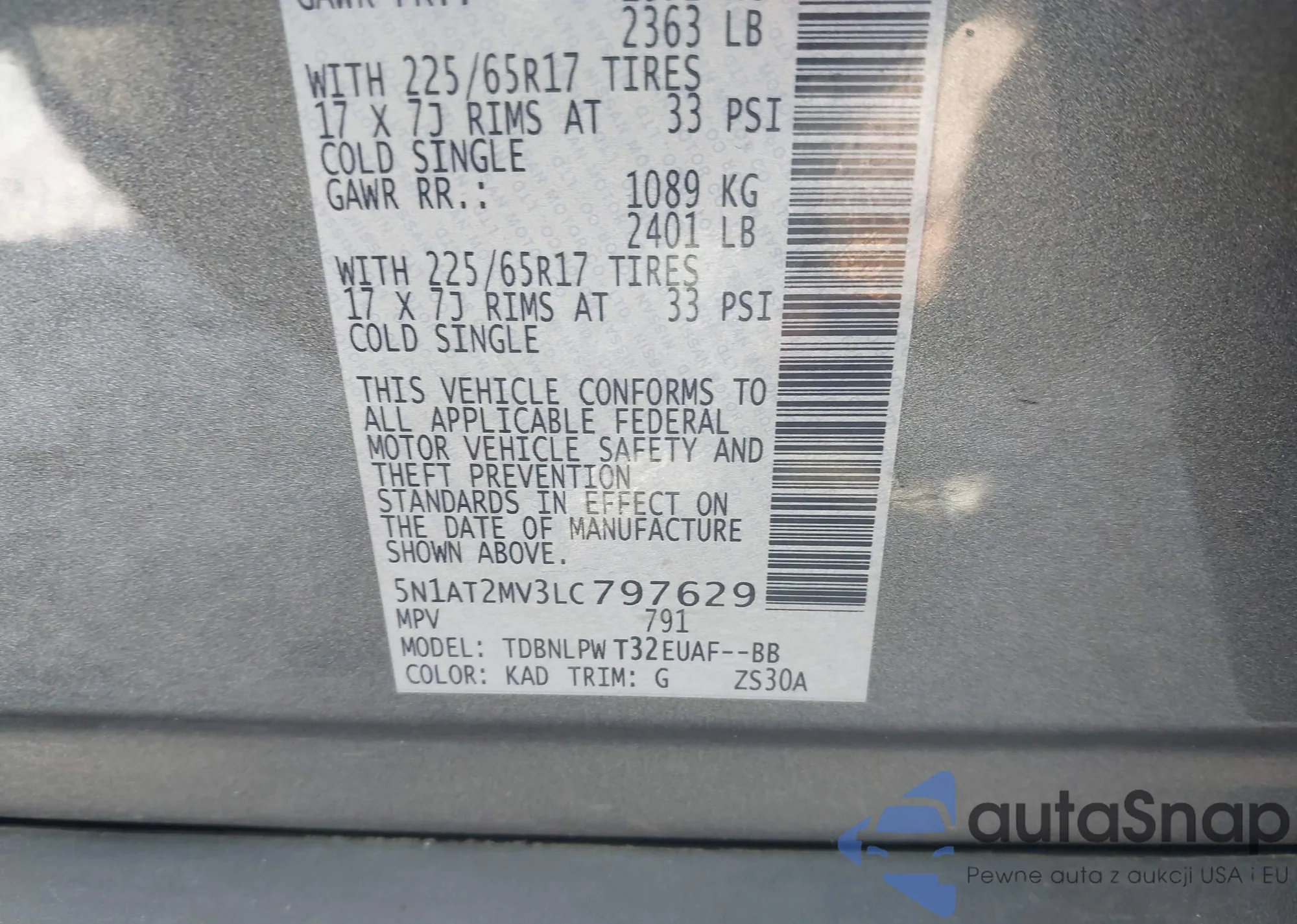 LOT: 43225636 VIN: JTMABABA8PA010791