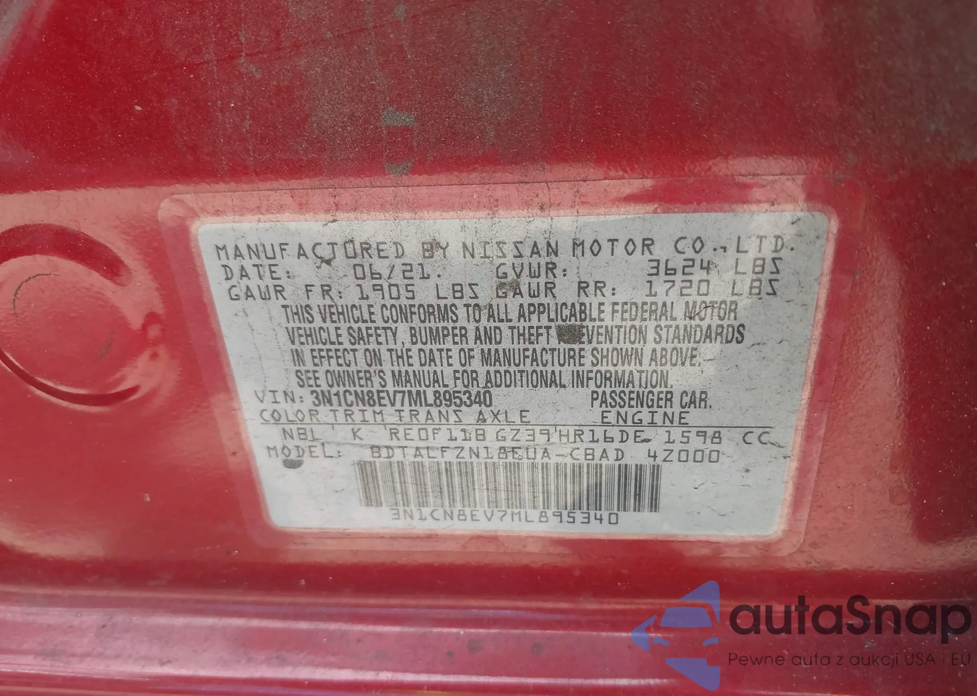 • VIN 4T1B11HK8JU605651