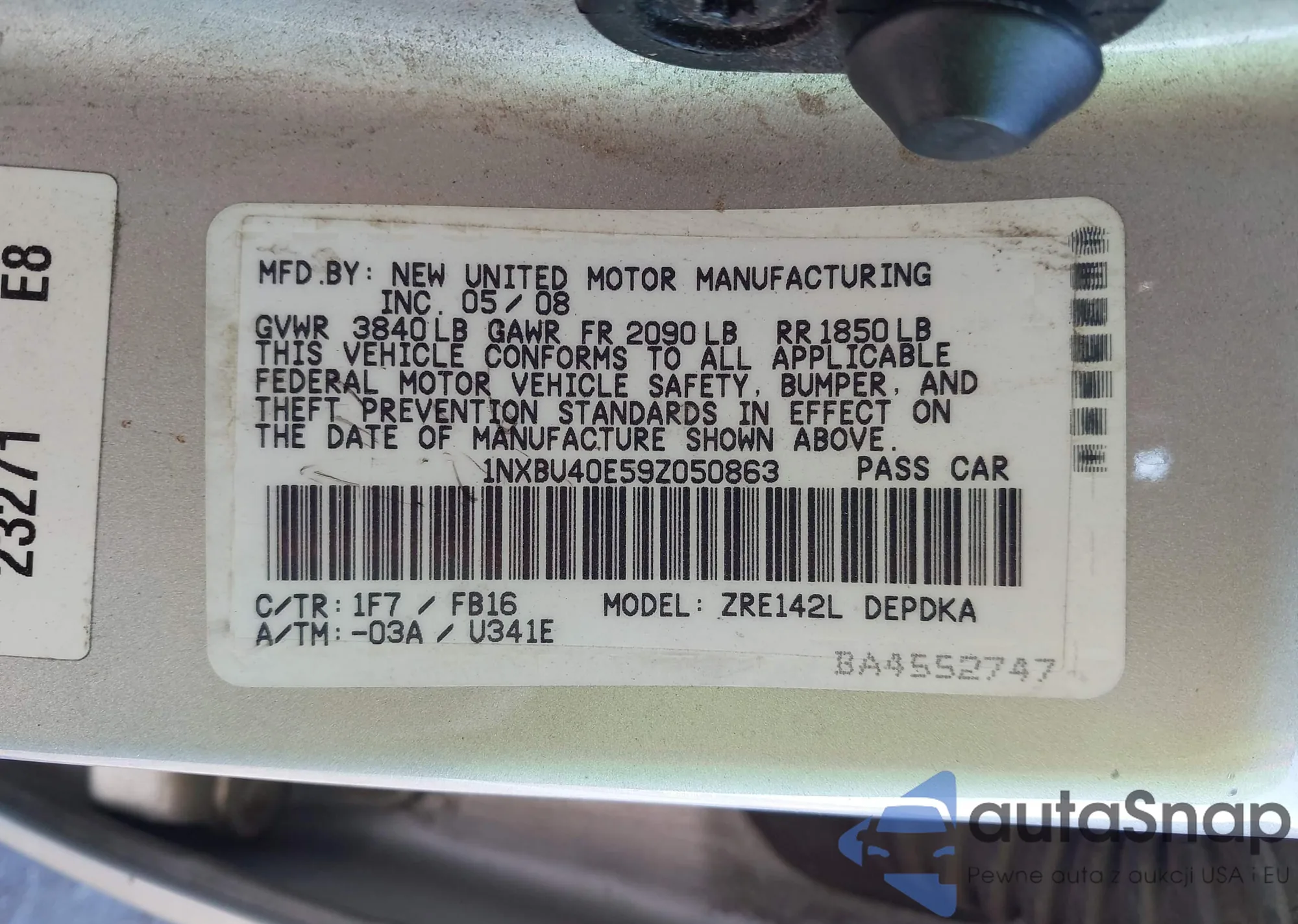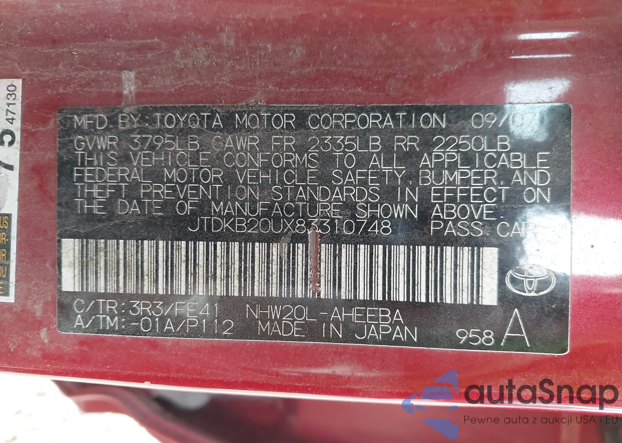 LOT: 43338501 VIN: JTDKB20UX83310748