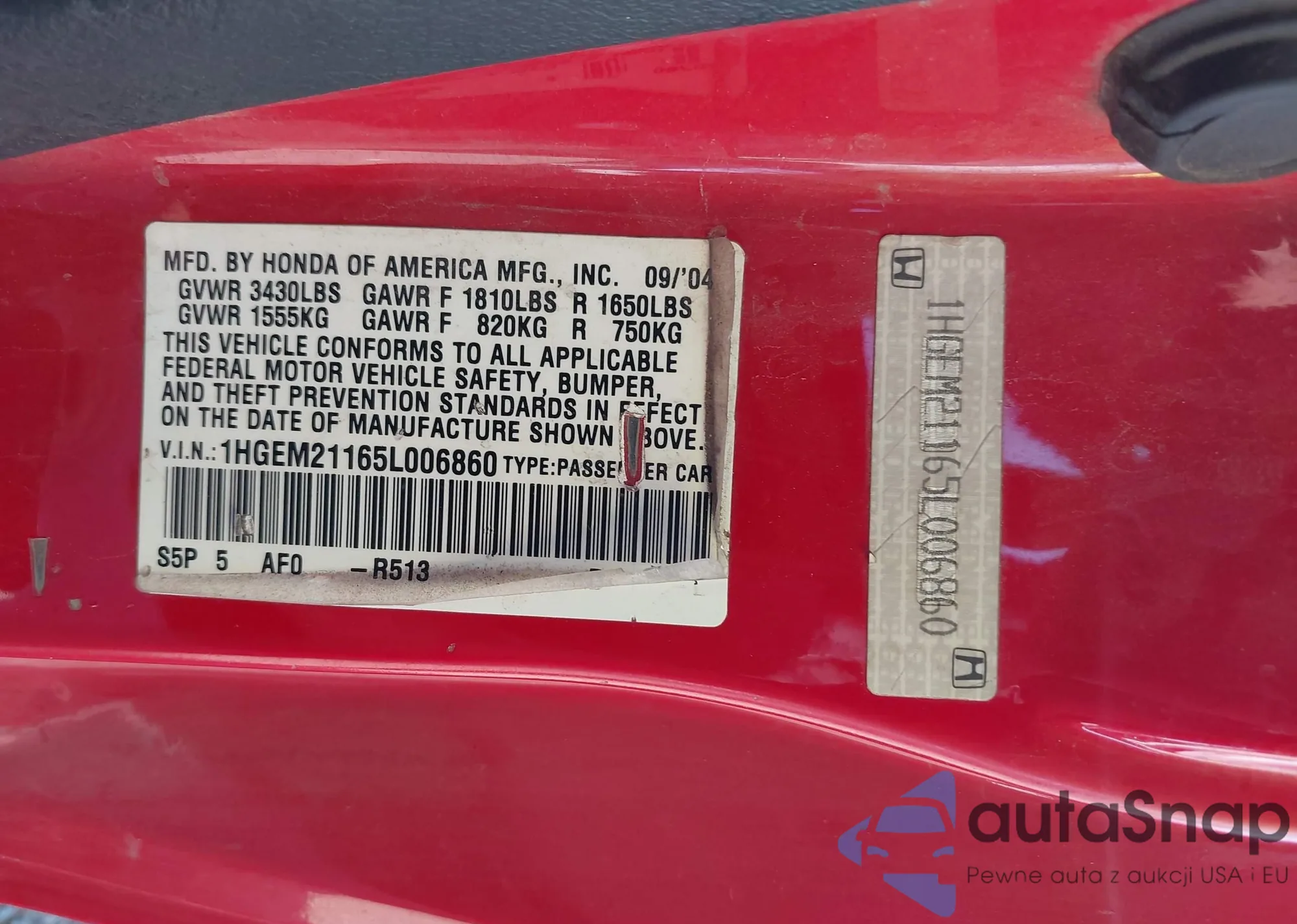 LOT: 43365259 VIN: 1HGEM21165L006860