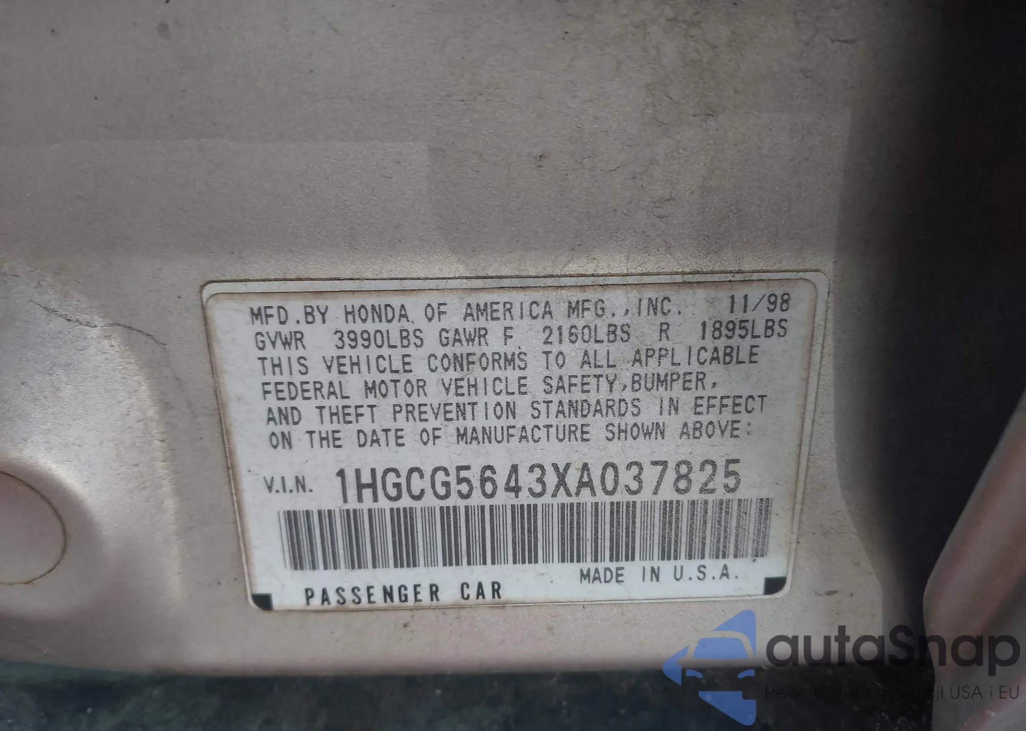 • VIN 1HGCG5643XA037825