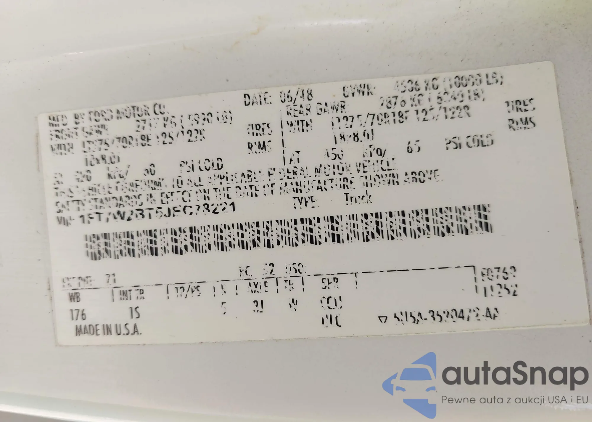 • VIN 1FT7W2BT5JEC78221