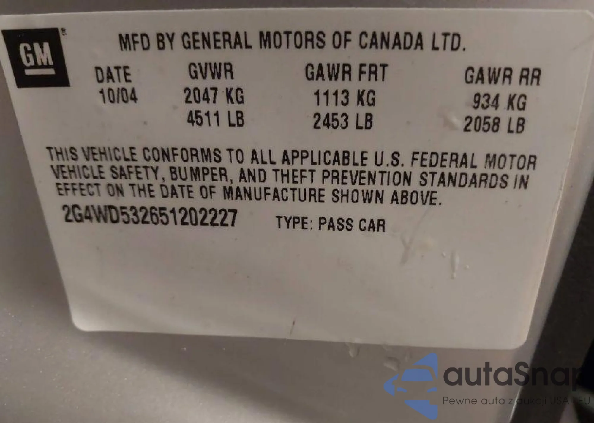 • VIN 5TETU62N57Z417797