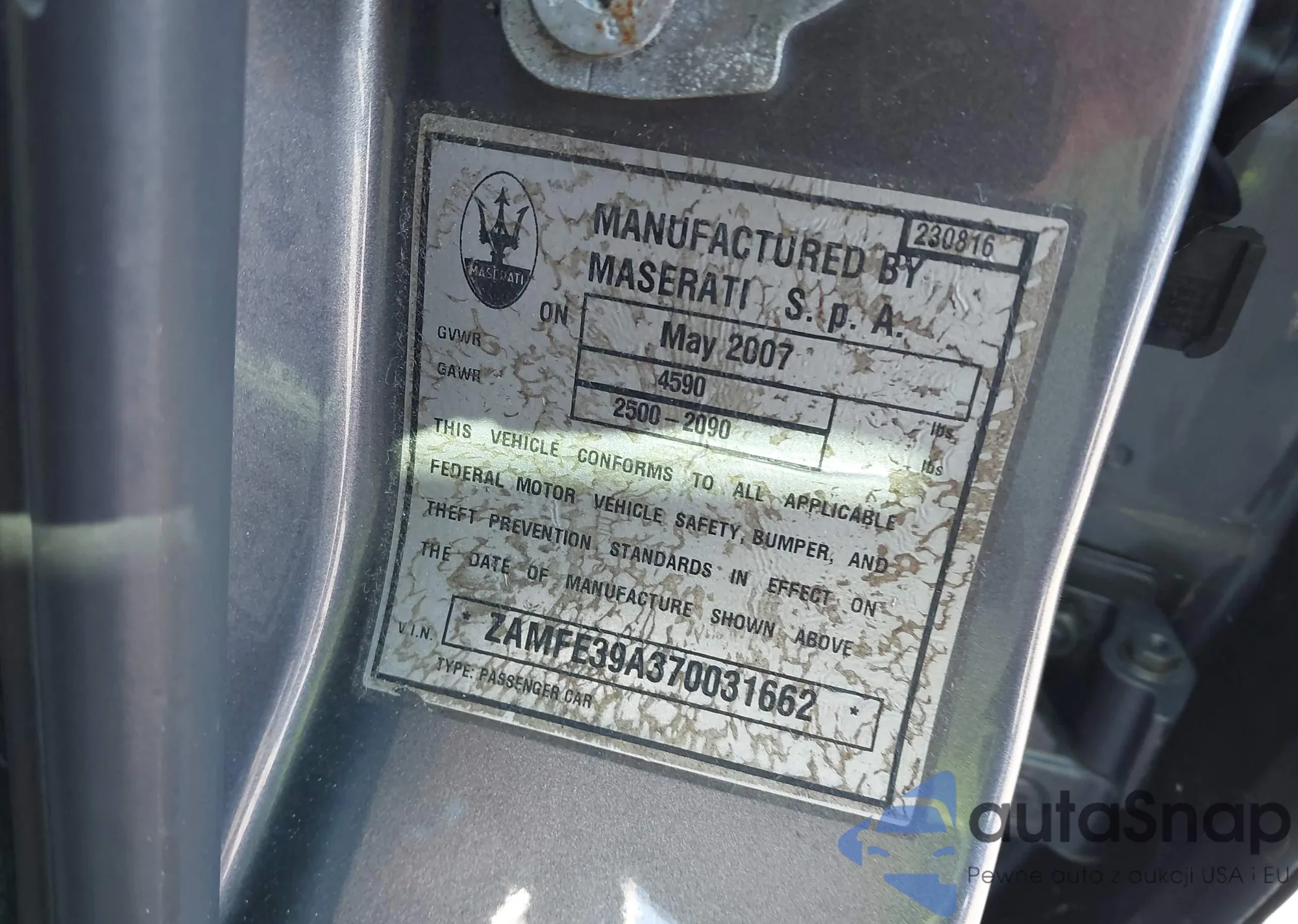 LOT: 43514427 VIN: ZAMFE39A370031662