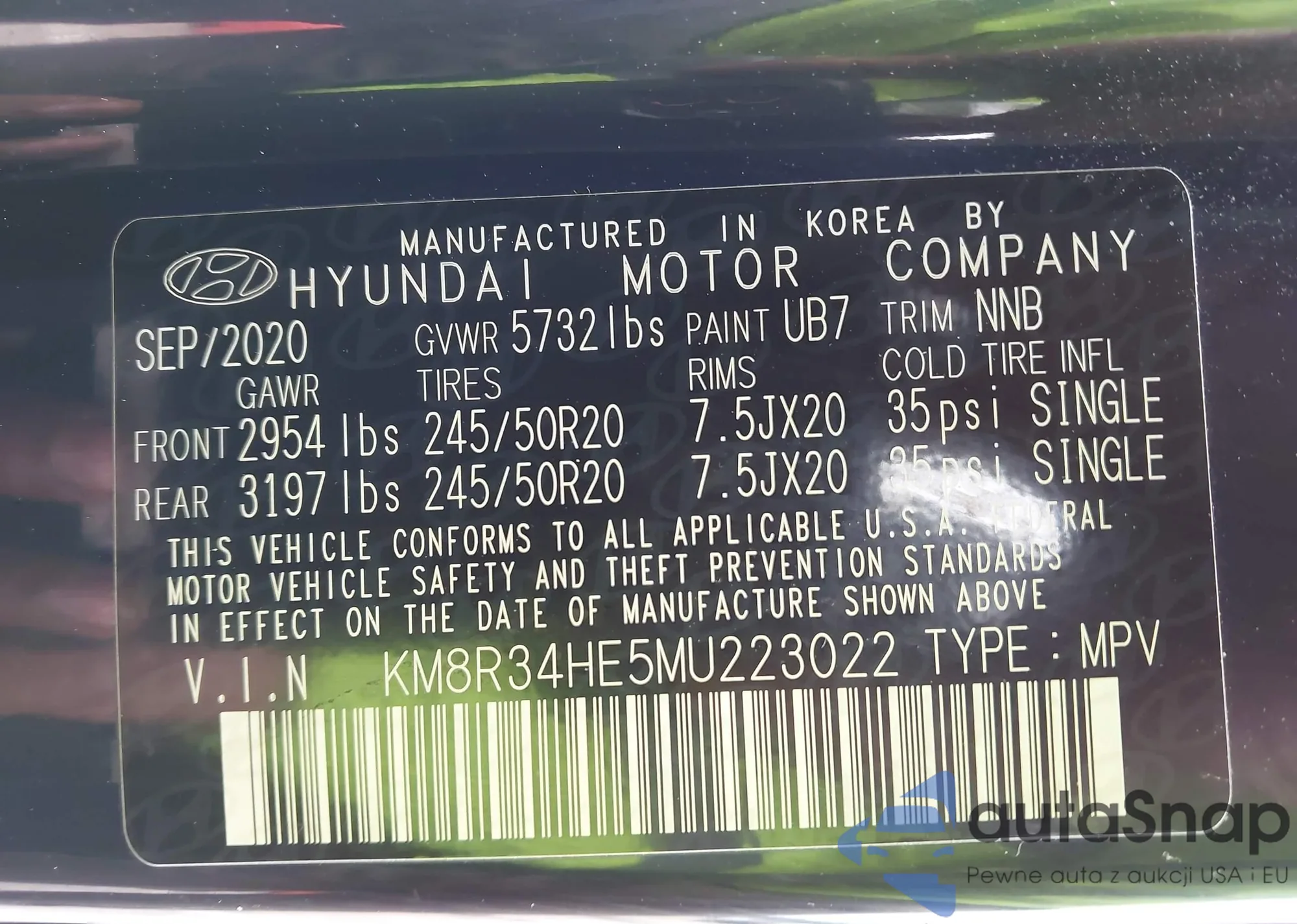 • VIN KM8R34HE5MU223022