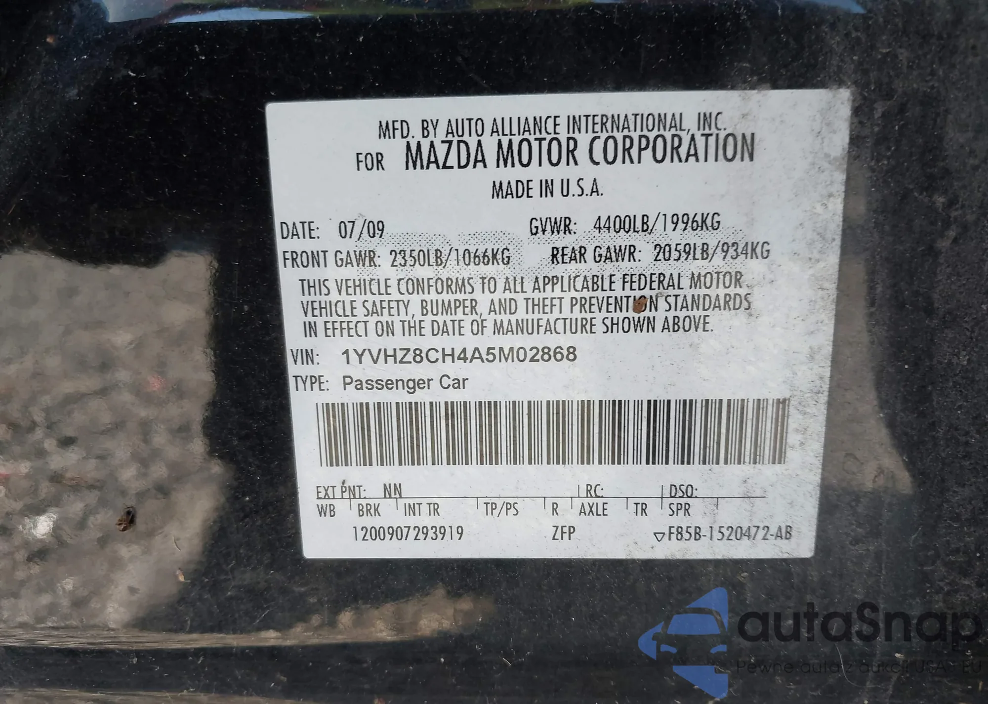 • VIN 1YVHZ8CH4A5M02868