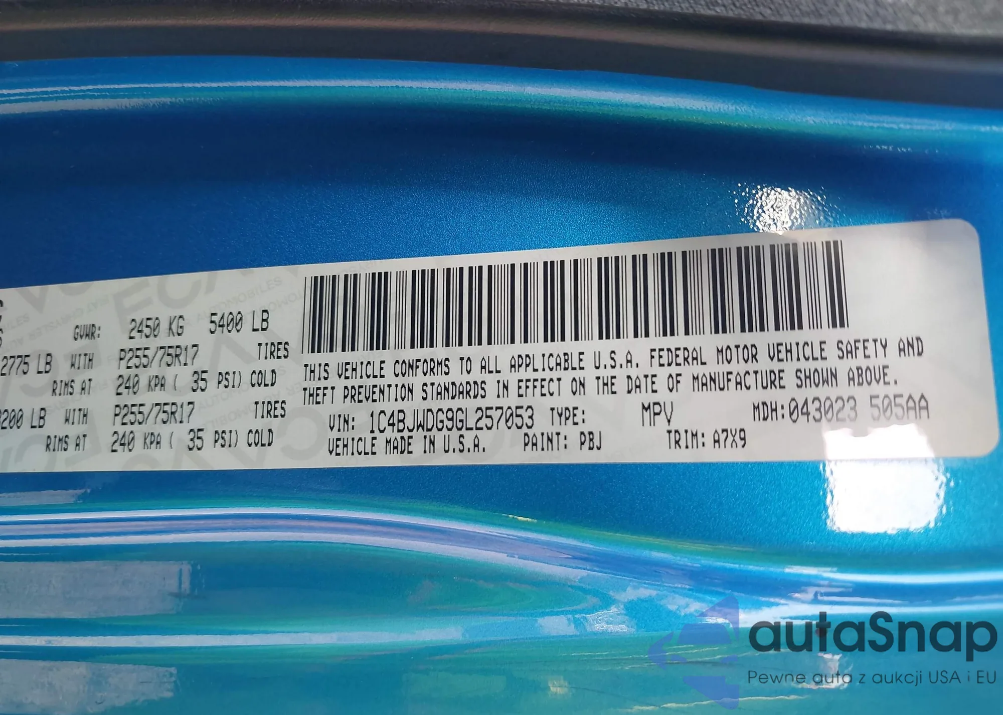 LOT: 42844473 VIN: 1C4RJEBG0GC383426
