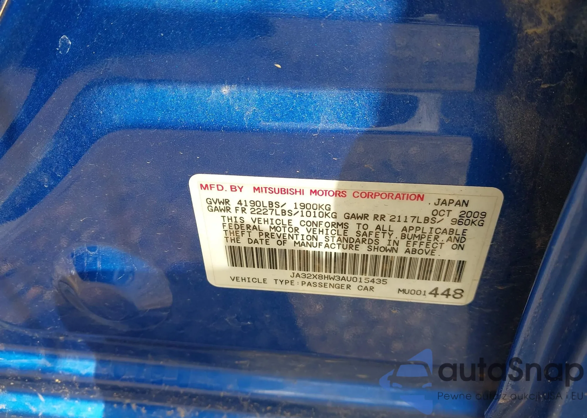 LOT: 42852450 VIN: JA32X8HW3AU015435