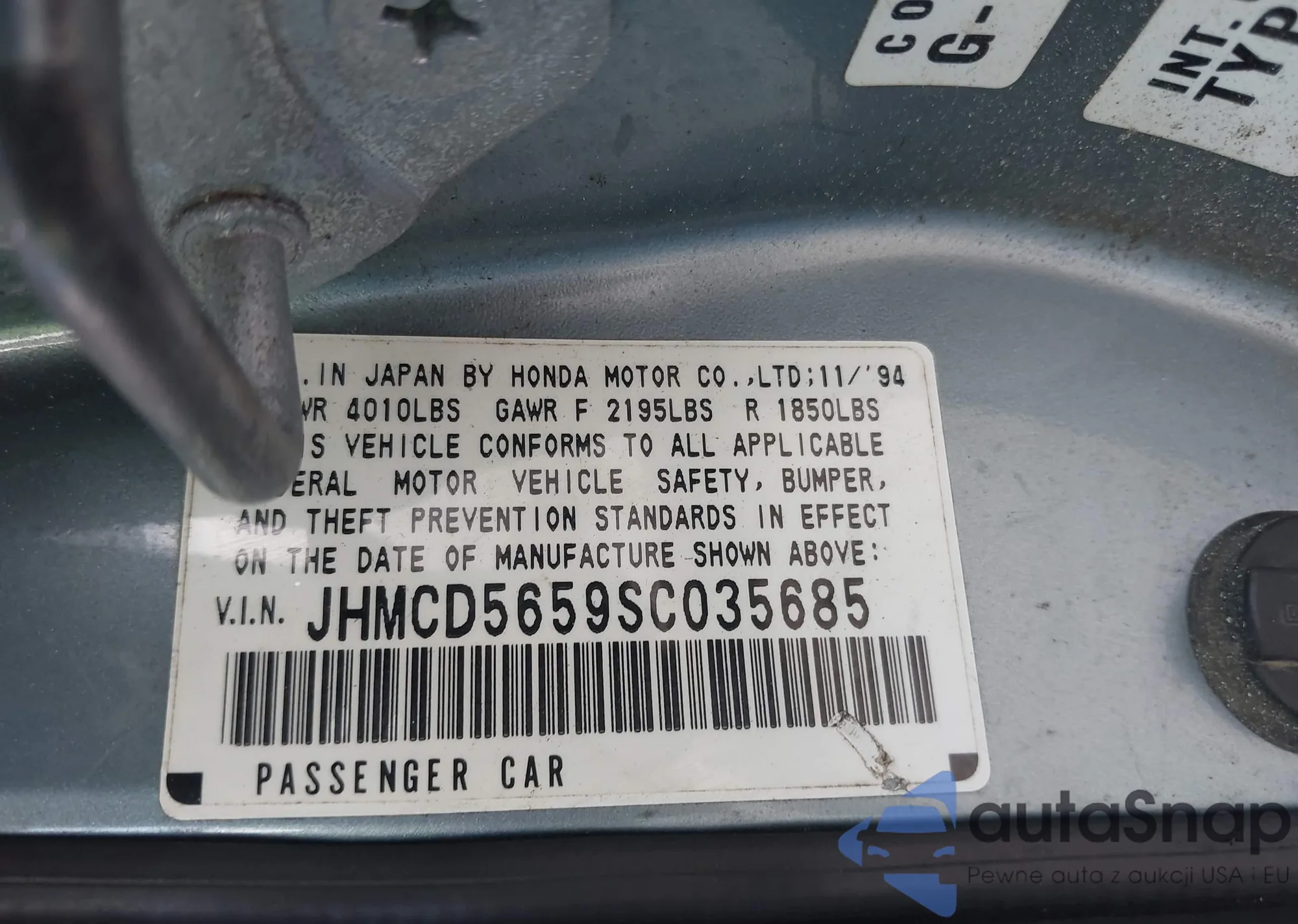 LOT: 43127856 VIN: JHMCD5659SC035685