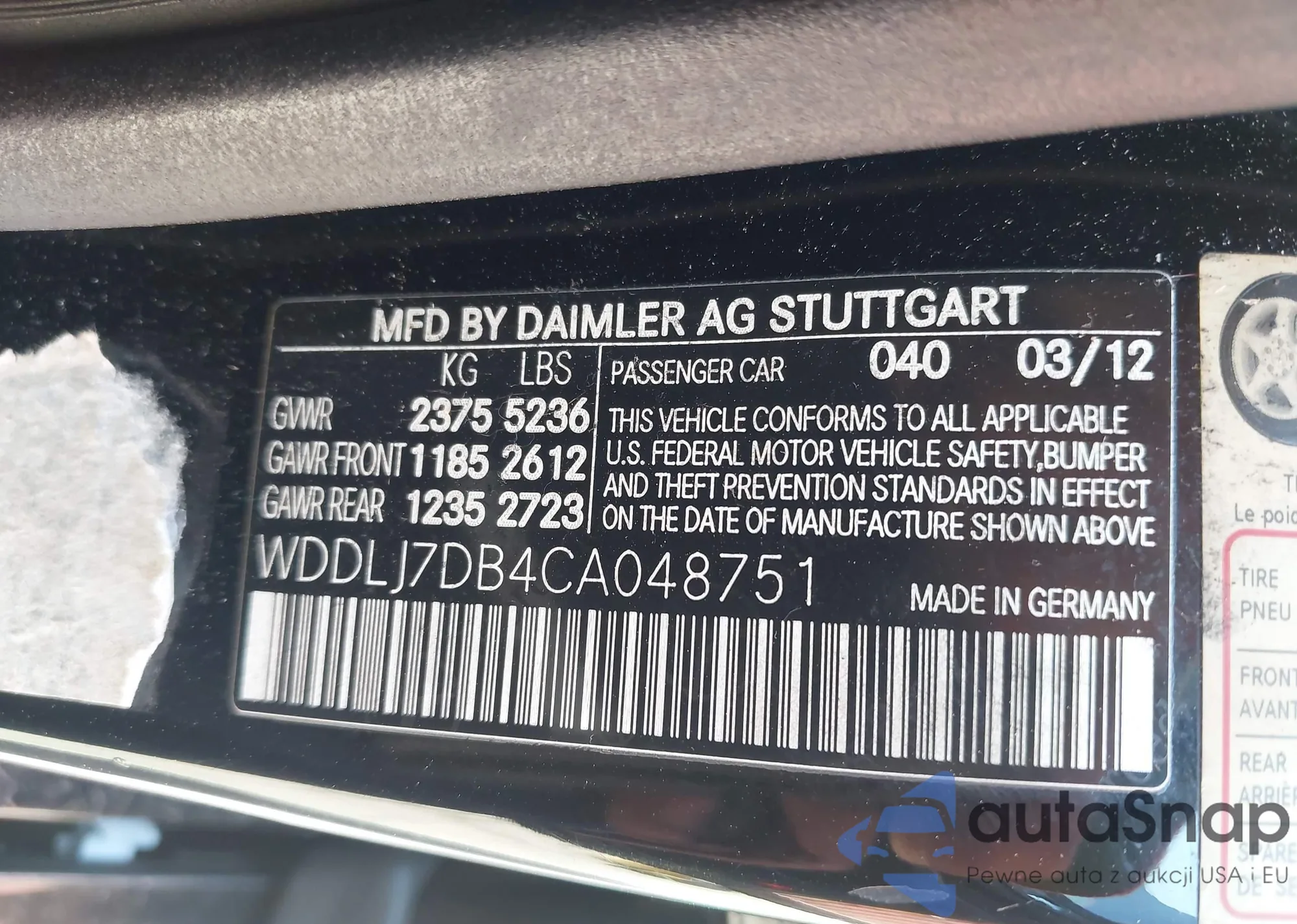 LOT: 43157509 VIN: WVWDM7AJ7DW132262