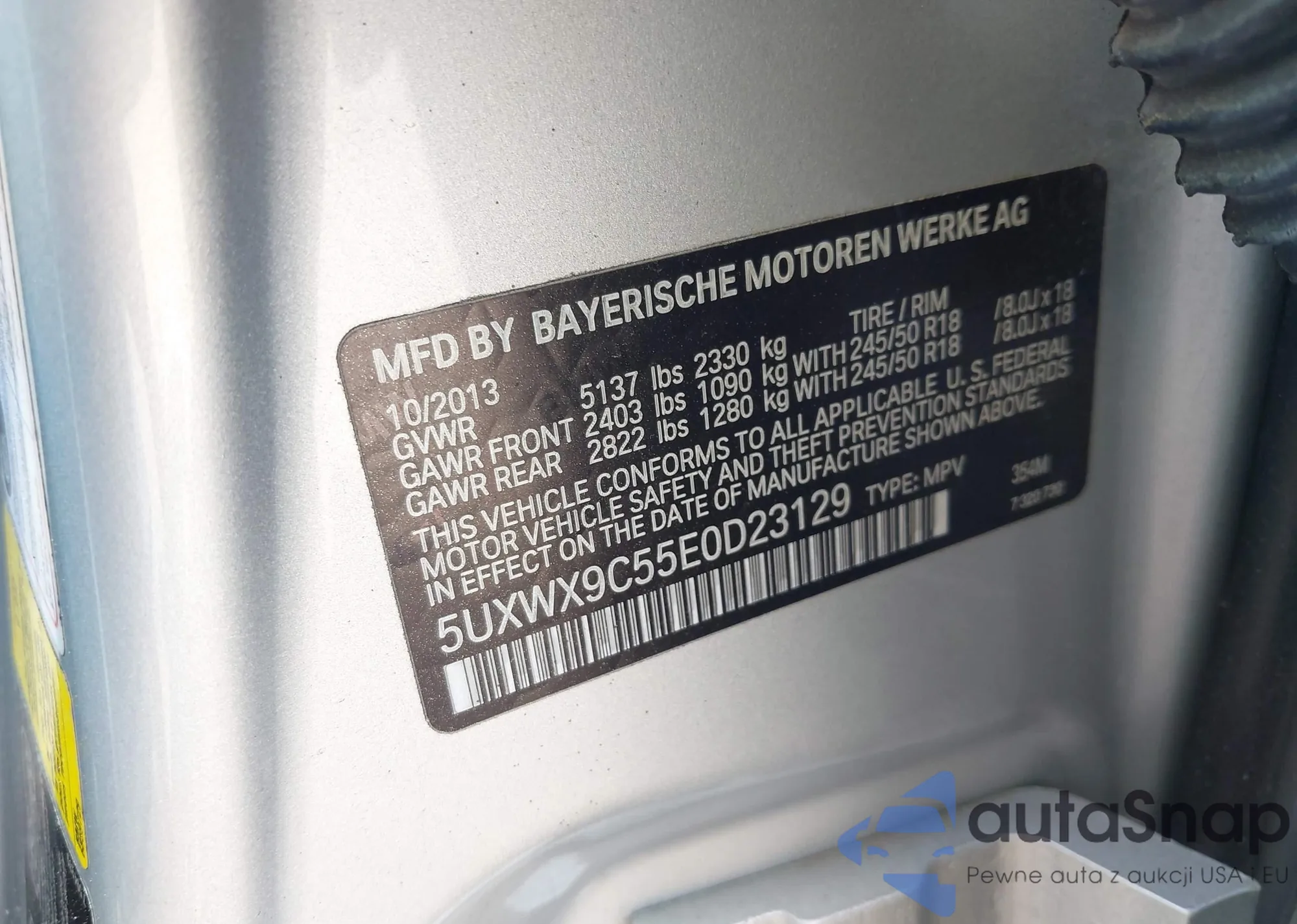 • VIN 5UXWX9C55E0D23129