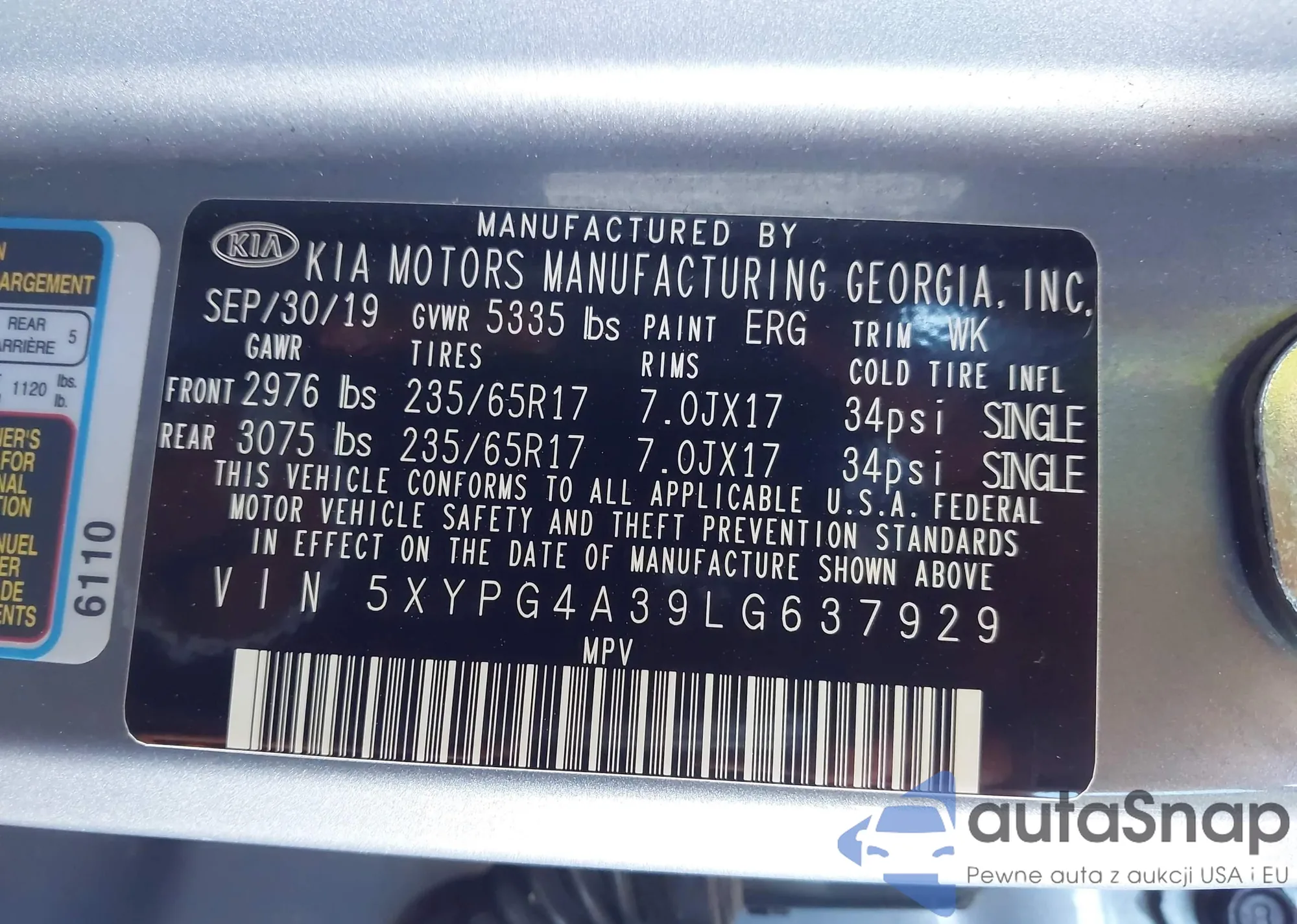 • VIN 5XYPG4A39LG637929