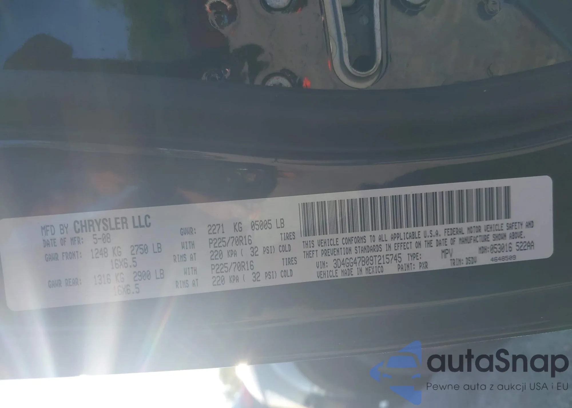 LOT: 43311287 VIN: 3D4GG47B09T215745