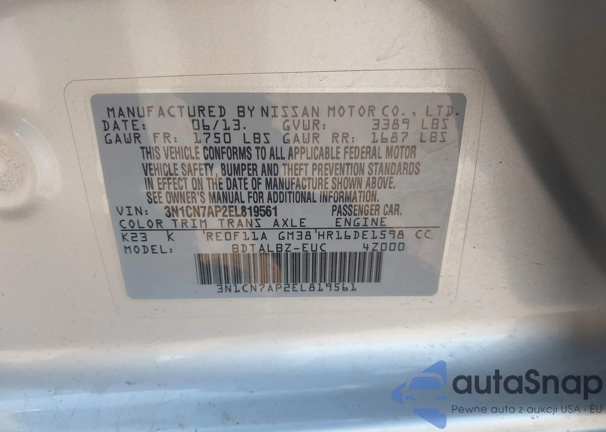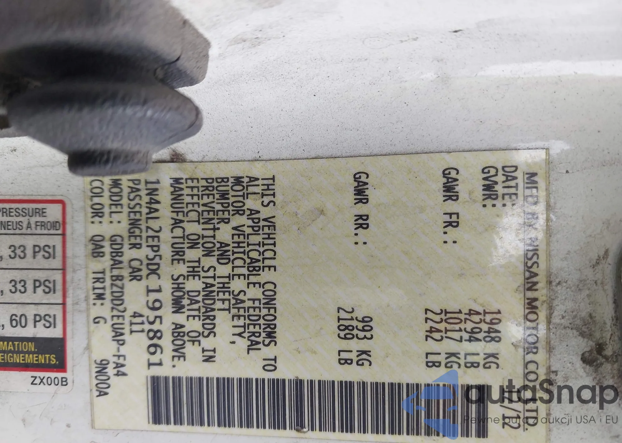 LOT: 43315781 VIN: 1N4AL2EP5DC195861
