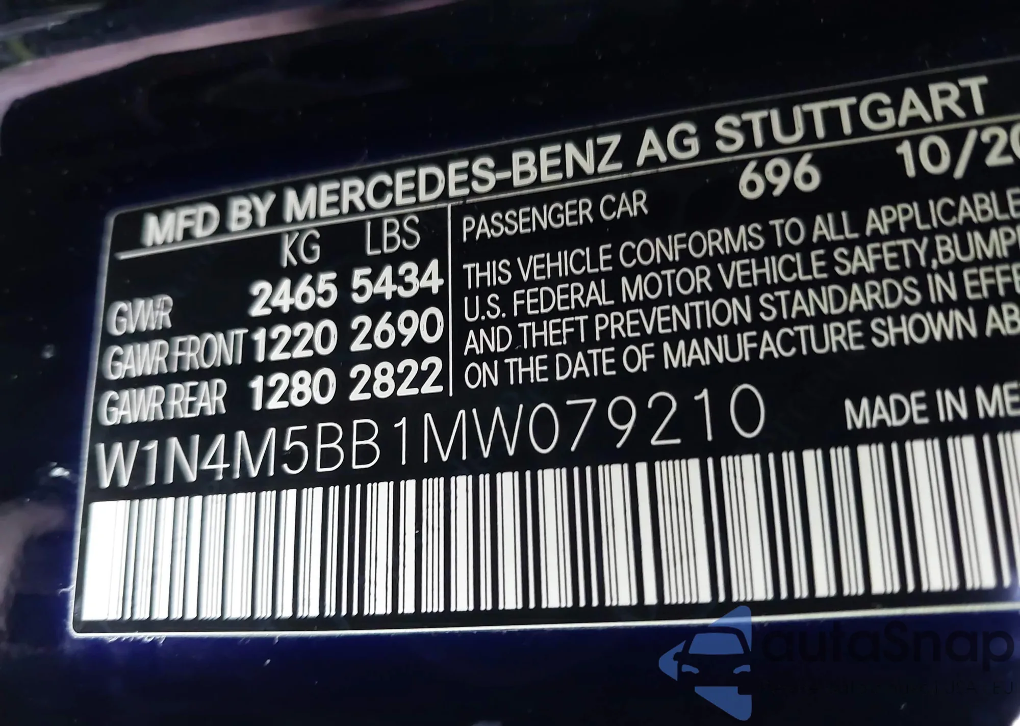 LOT: 43315923 VIN: W1N4M5BB1MW079210