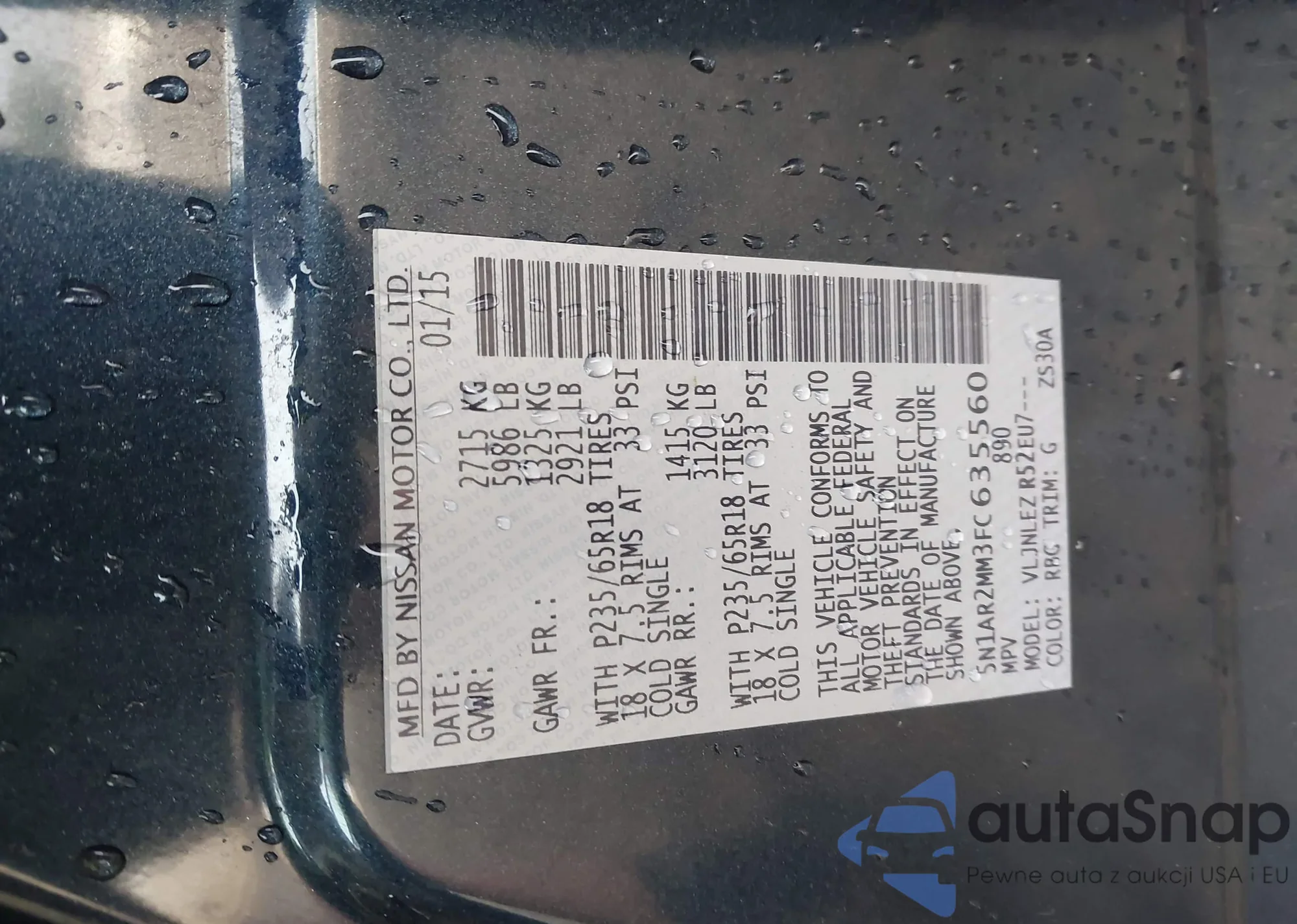 LOT: 43321591 VIN: 5N1AR2MM3FC635560