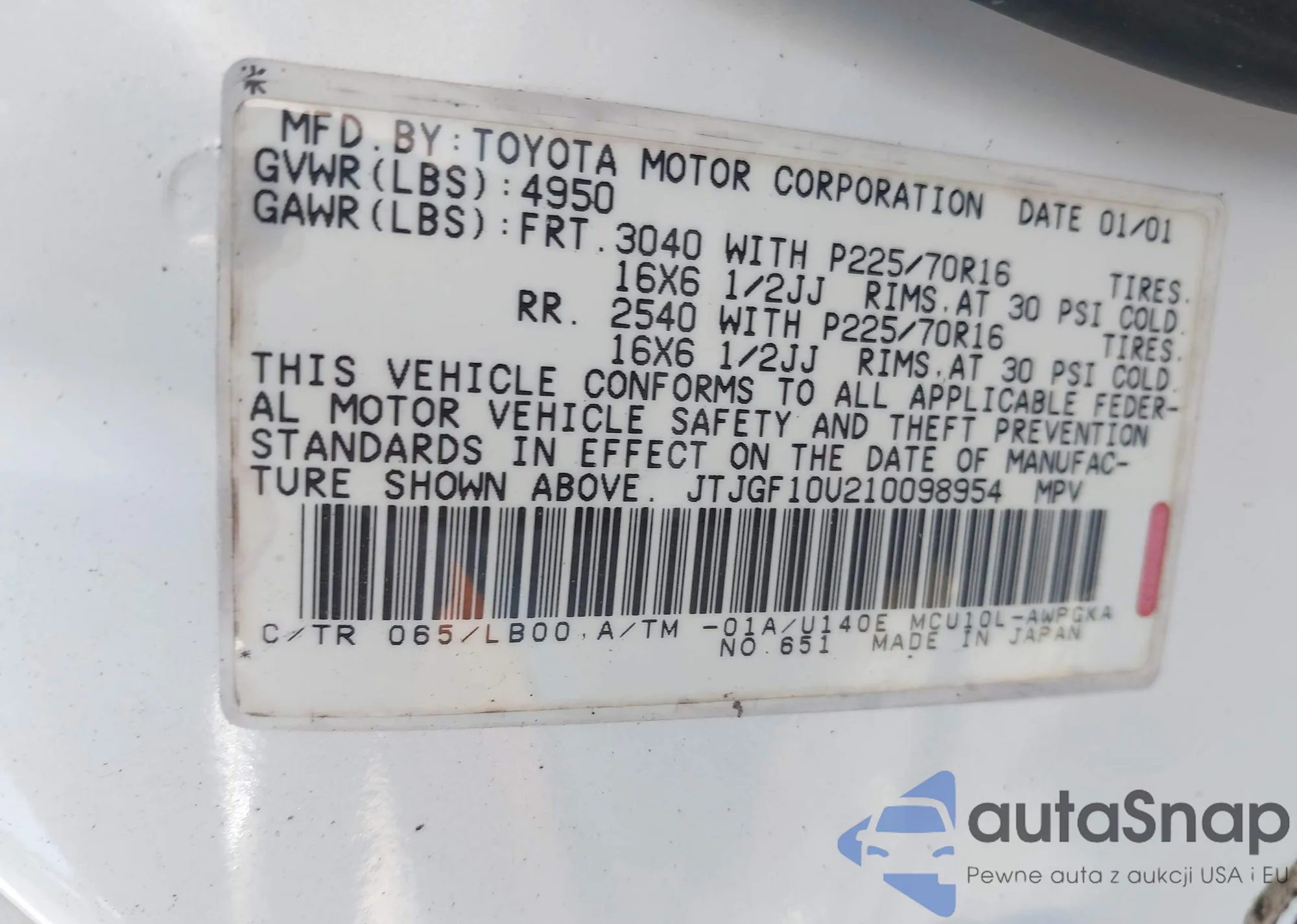 • VIN JTJGF10U210098954