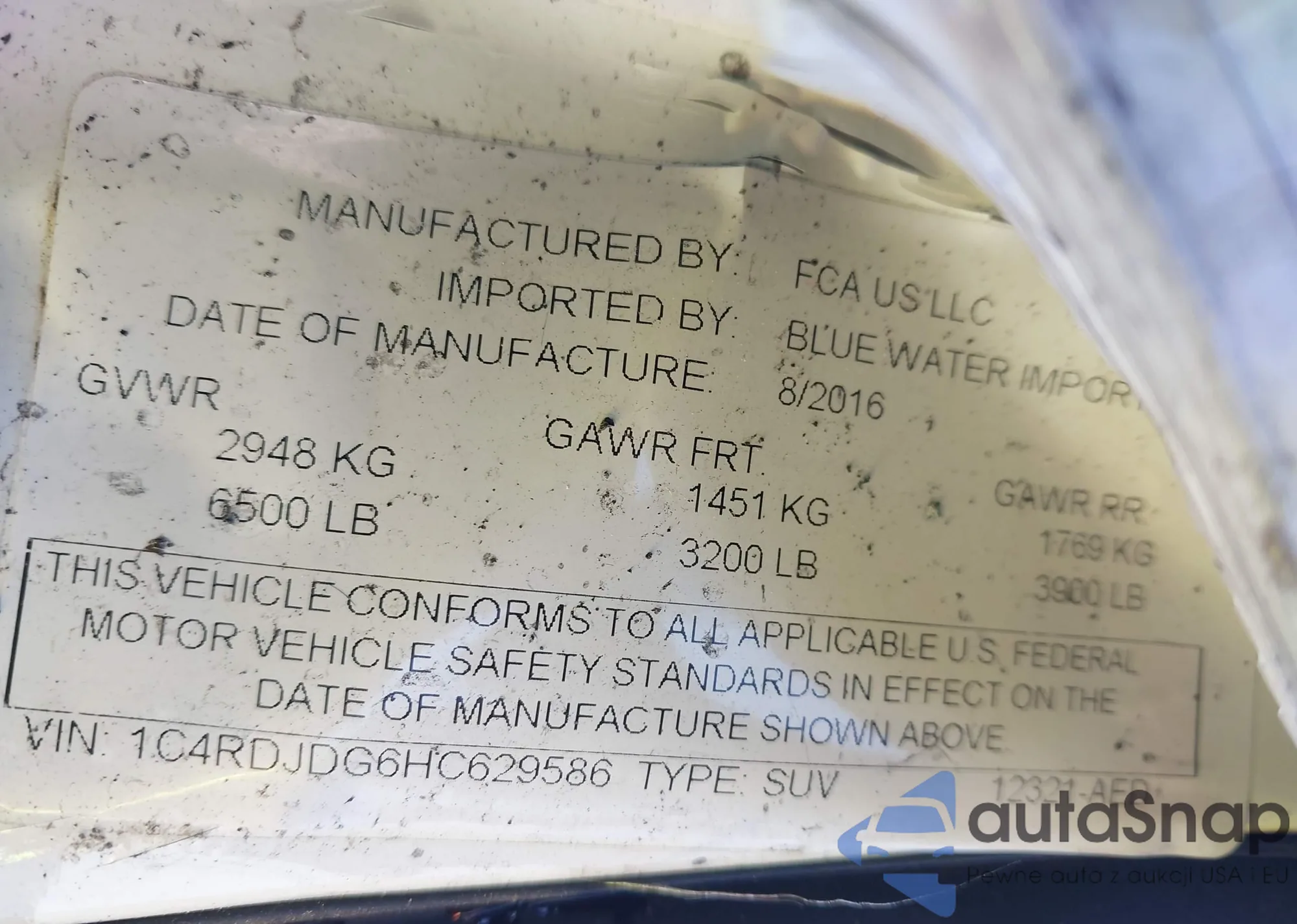 • VIN 1C4RDJDG6HC629586