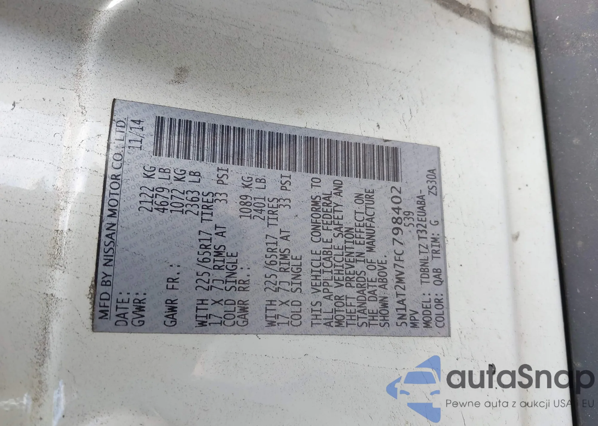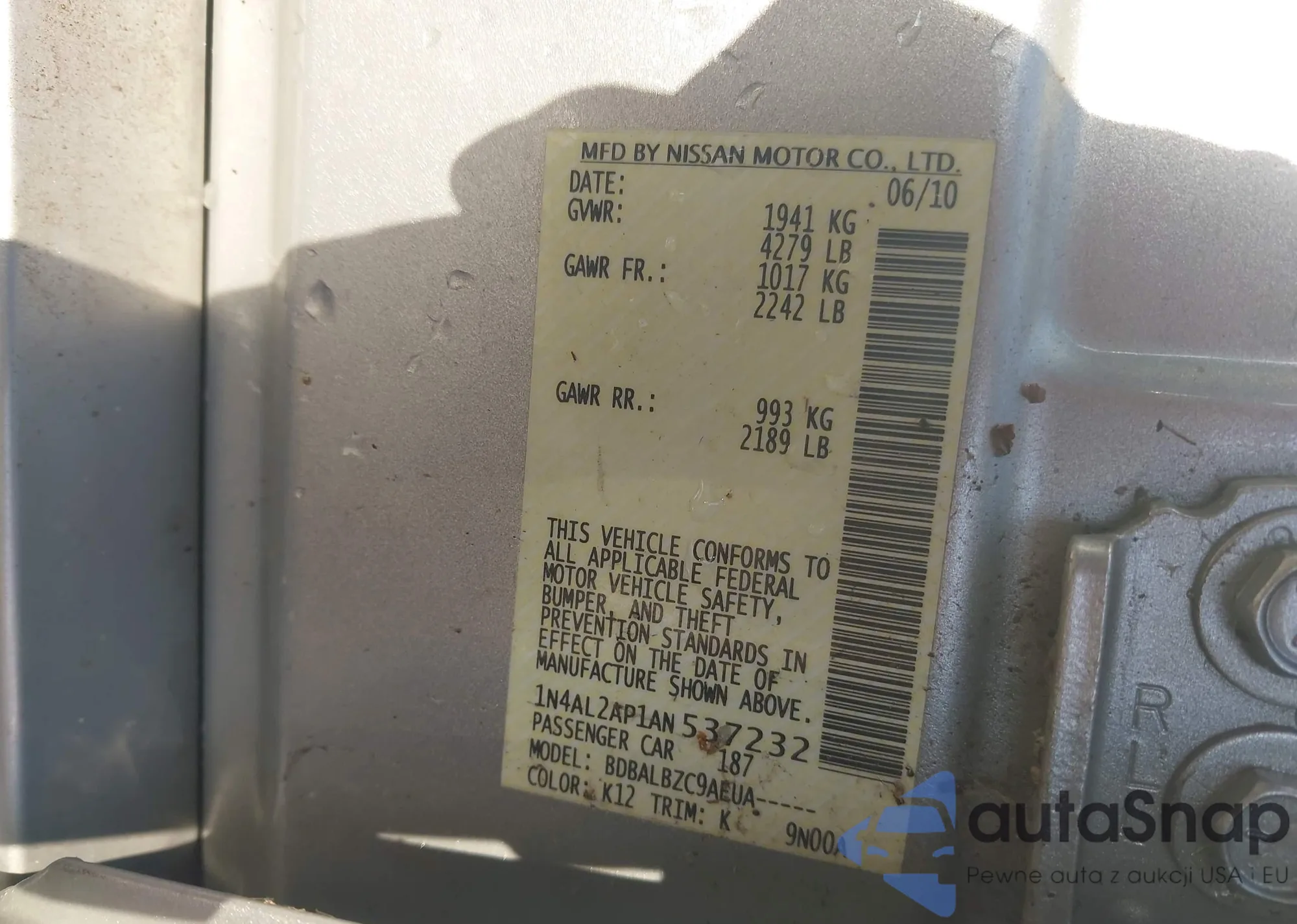 LOT: 43367065 VIN: 1N4AL2AP1AN537232