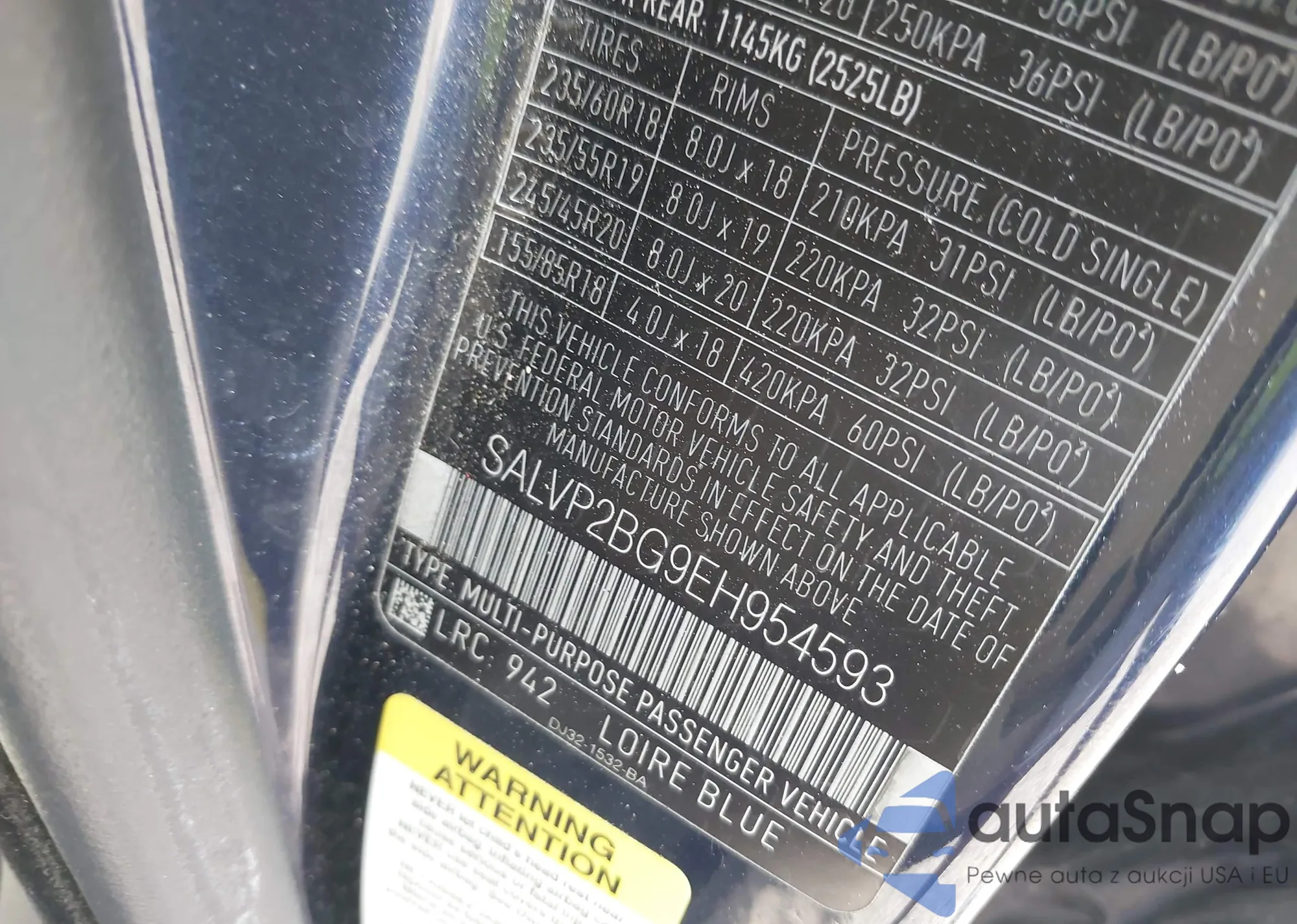 • VIN SALVP2BG9EH954593
