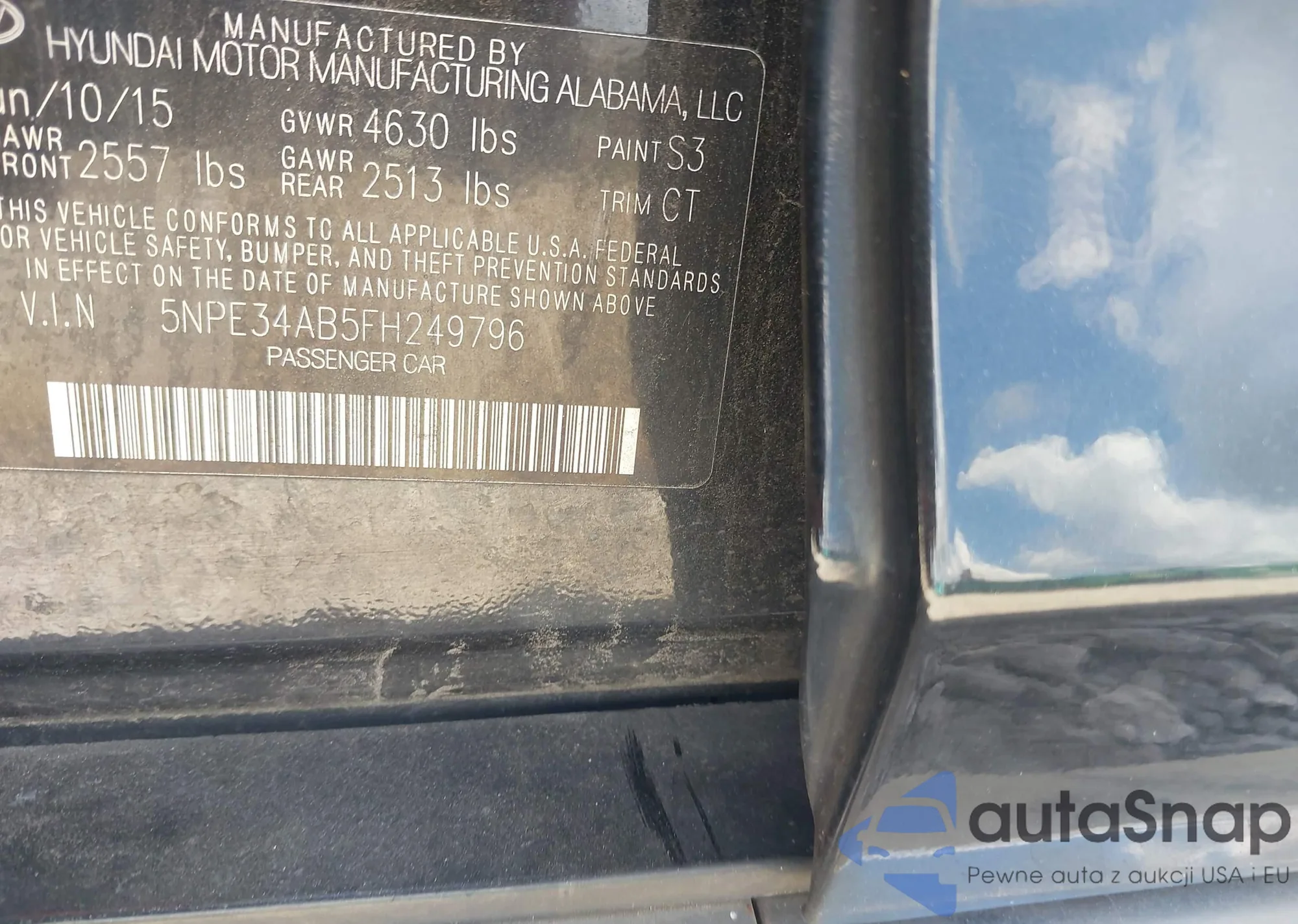 • VIN 5NPE34AB5FH249796
