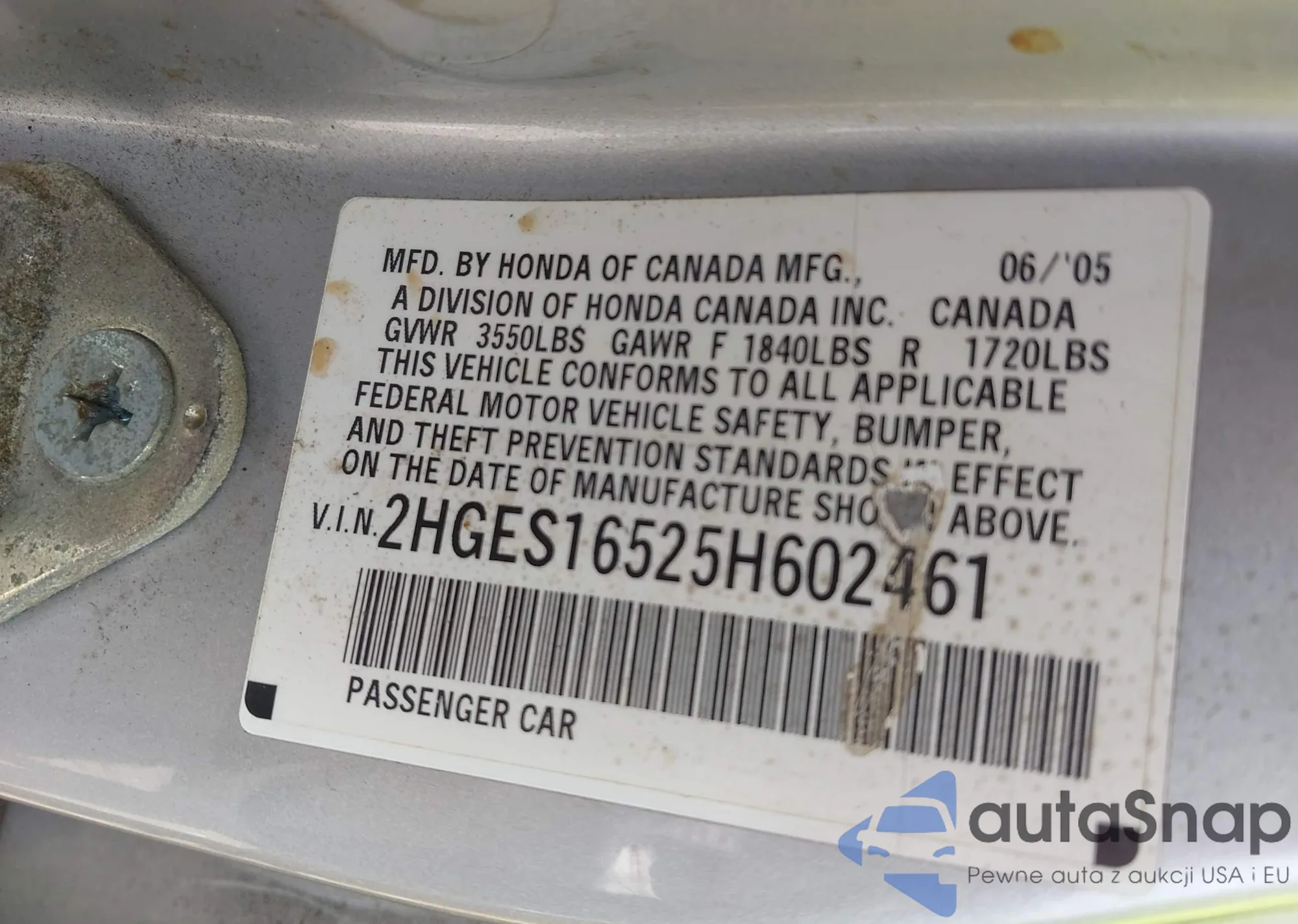 LOT: 43368290 VIN: 5FNYF18486B026239