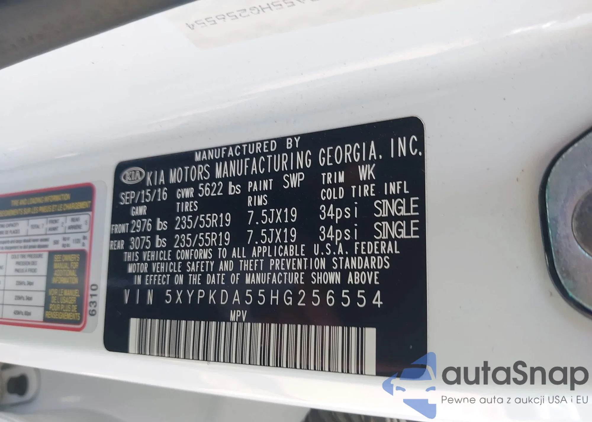 • VIN 5XYPKDA55HG256554