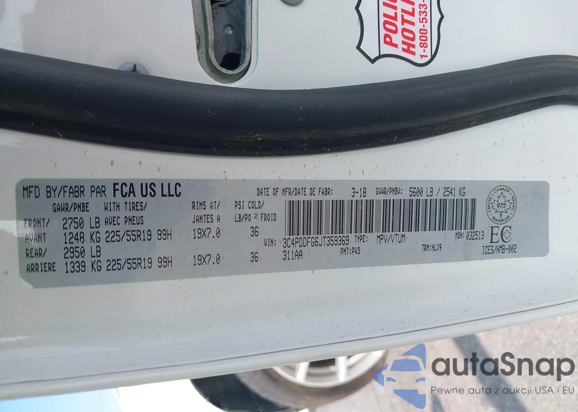 LOT: 43170551 VIN: 3C4PDDFG6JT359369