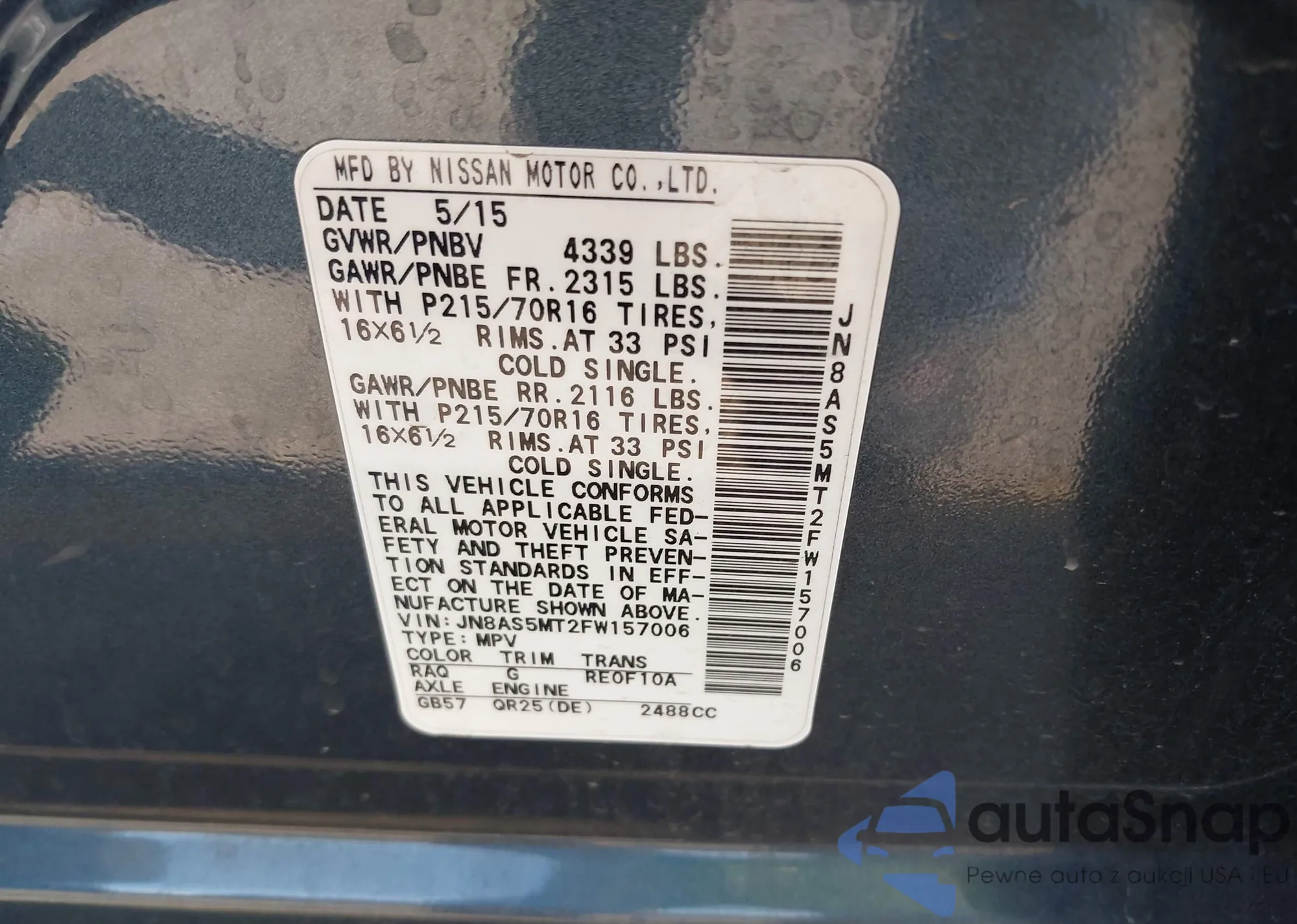 • VIN JN8AS5MT2FW157006