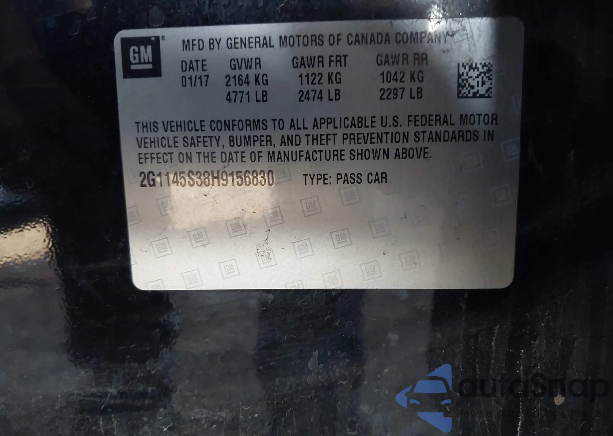 • VIN 2G1145S38H9156830