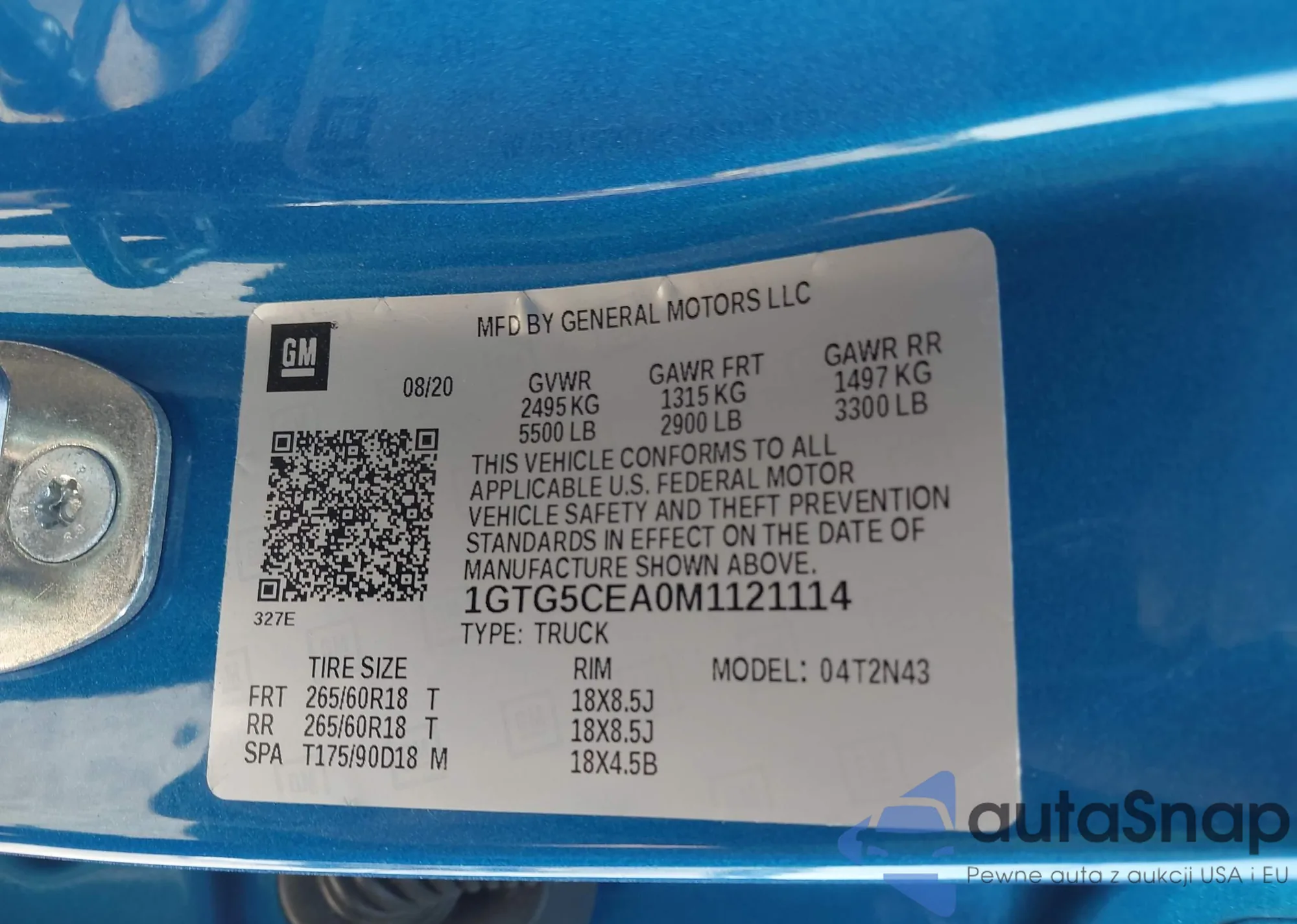 LOT: 43189133 VIN: 1GTG5CEA0M1121114