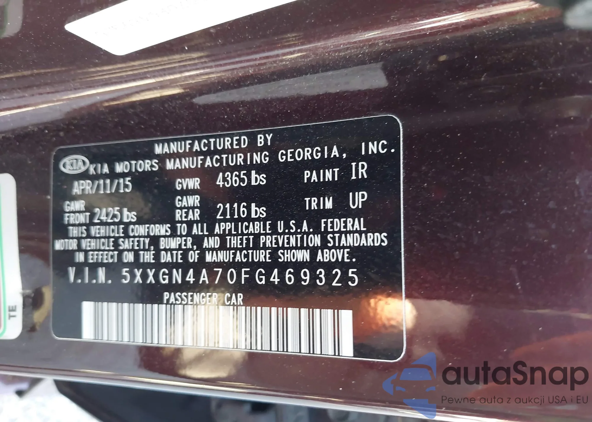 LOT: 43200446 VIN: 5NPE24AF0FH147831