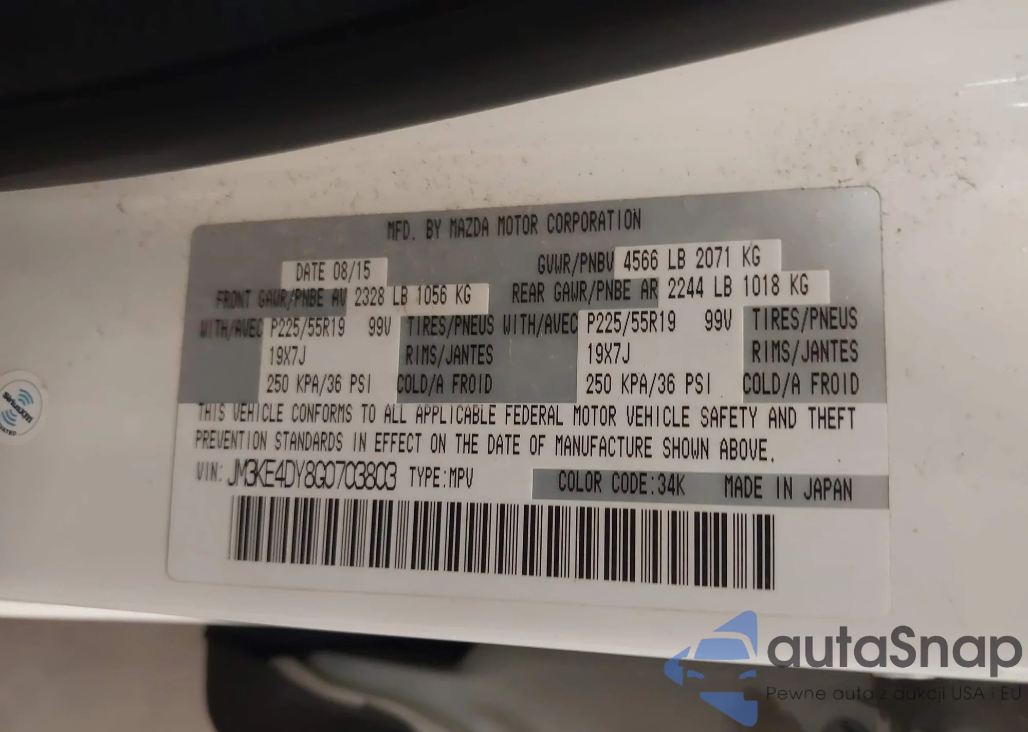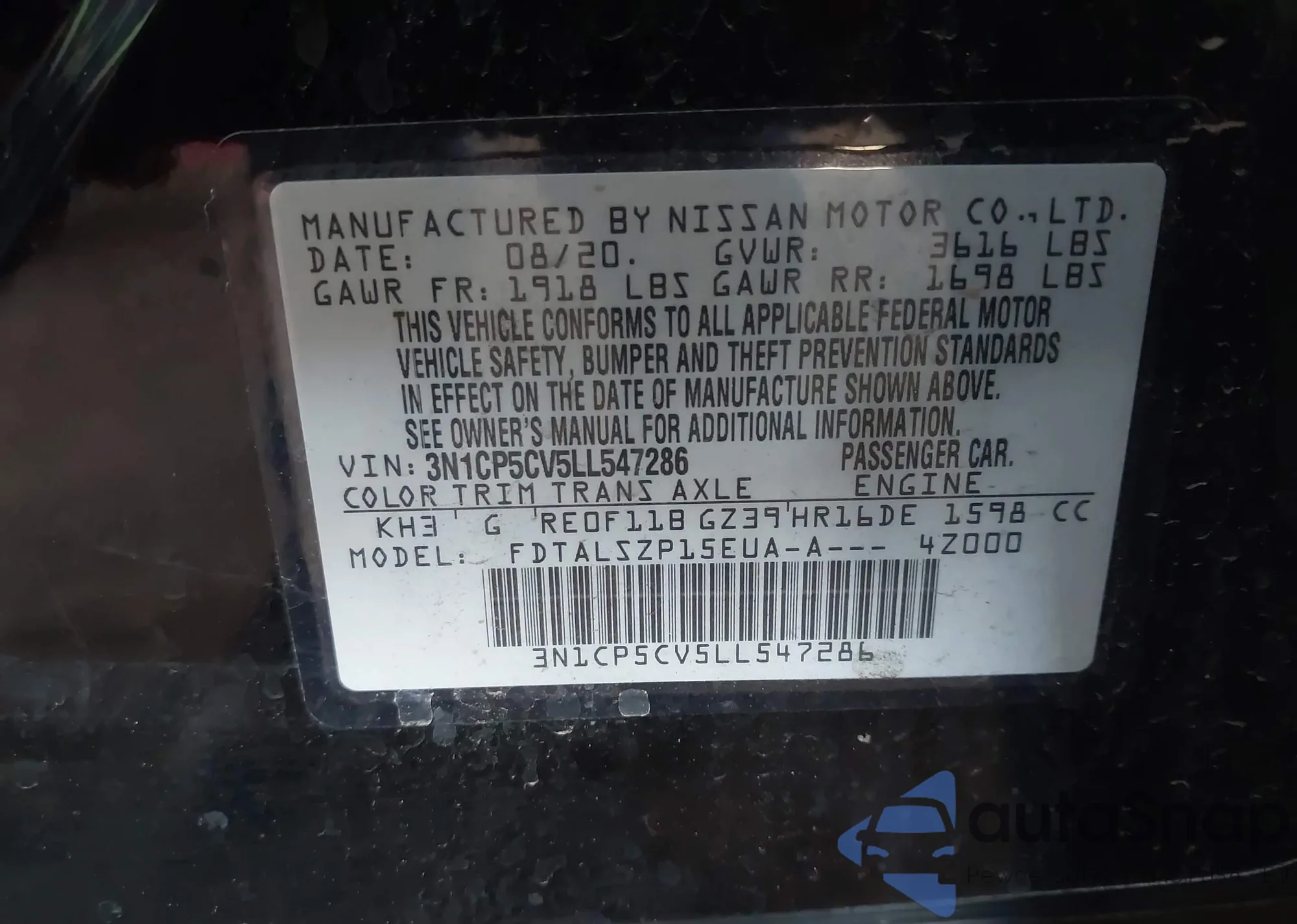 • VIN 5N1AT3BB8MC813047